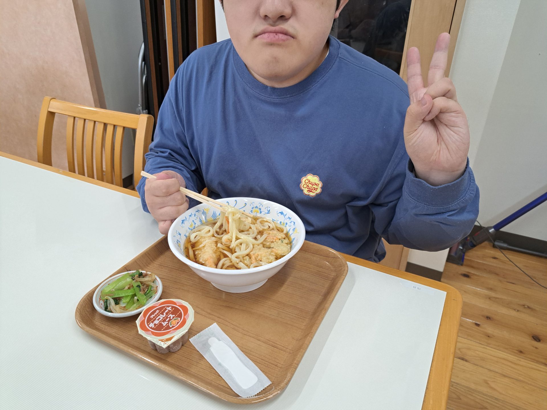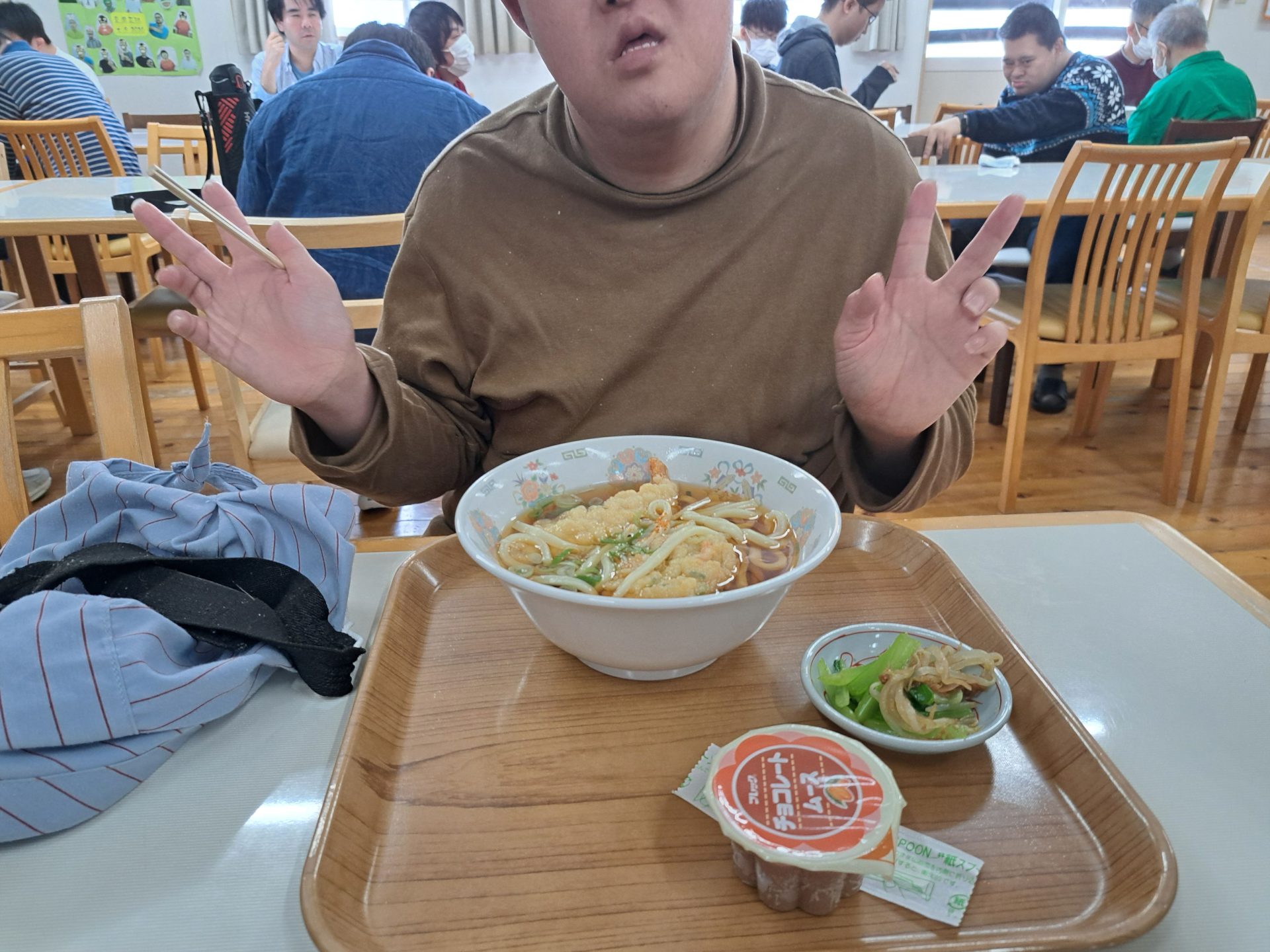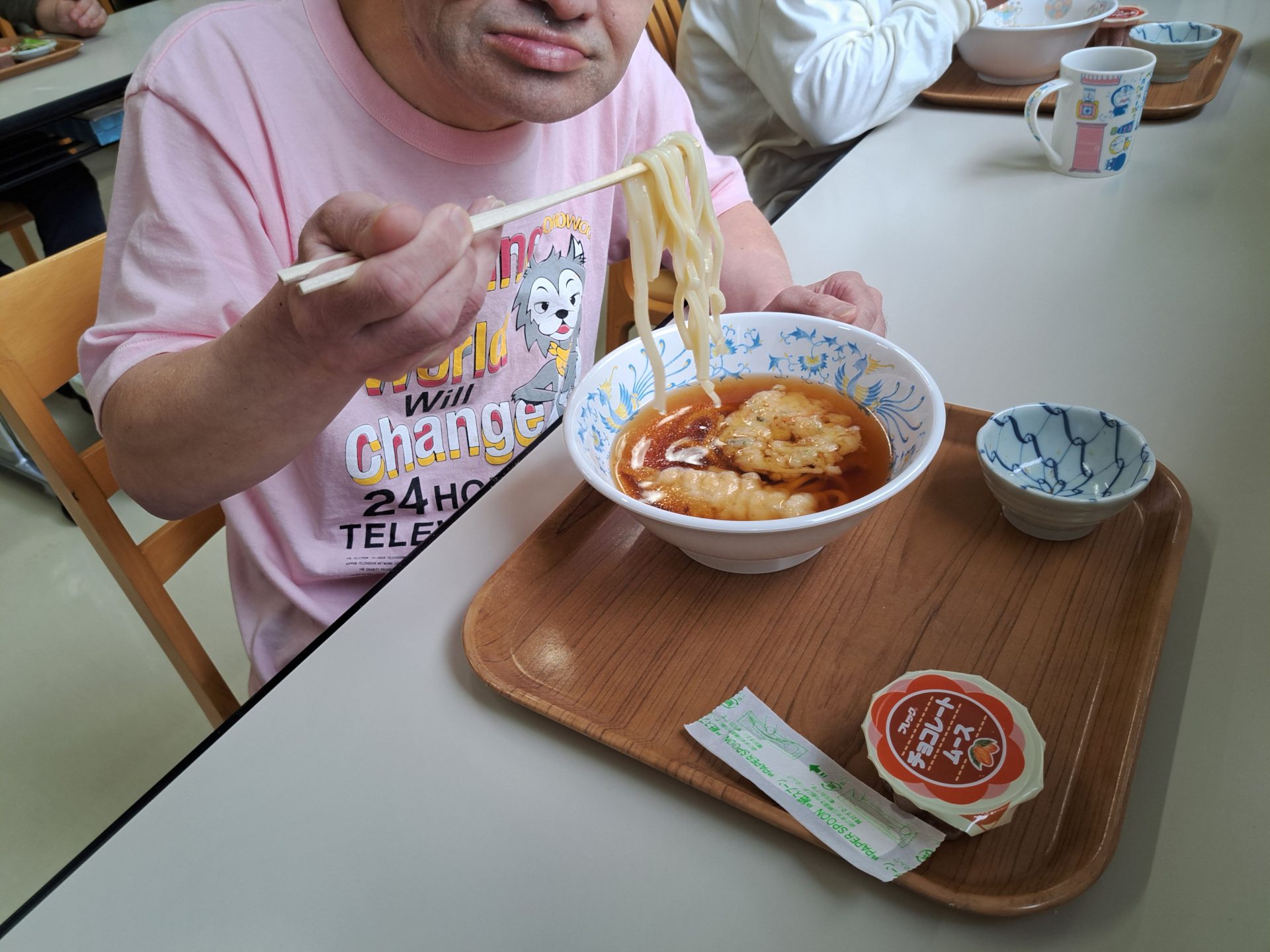 やった~天ぷらうどんだ!いい匂い~(*^-^*)
