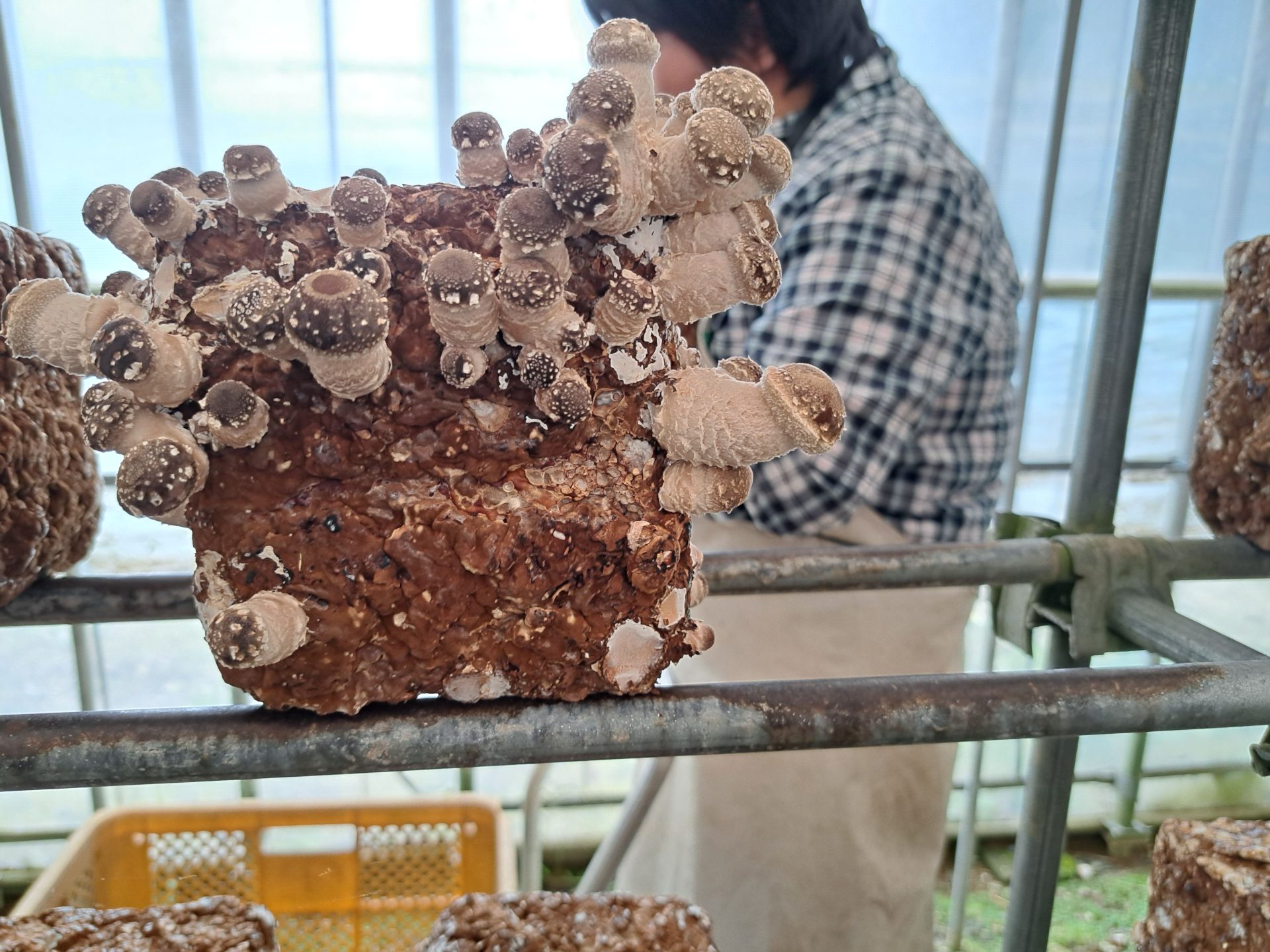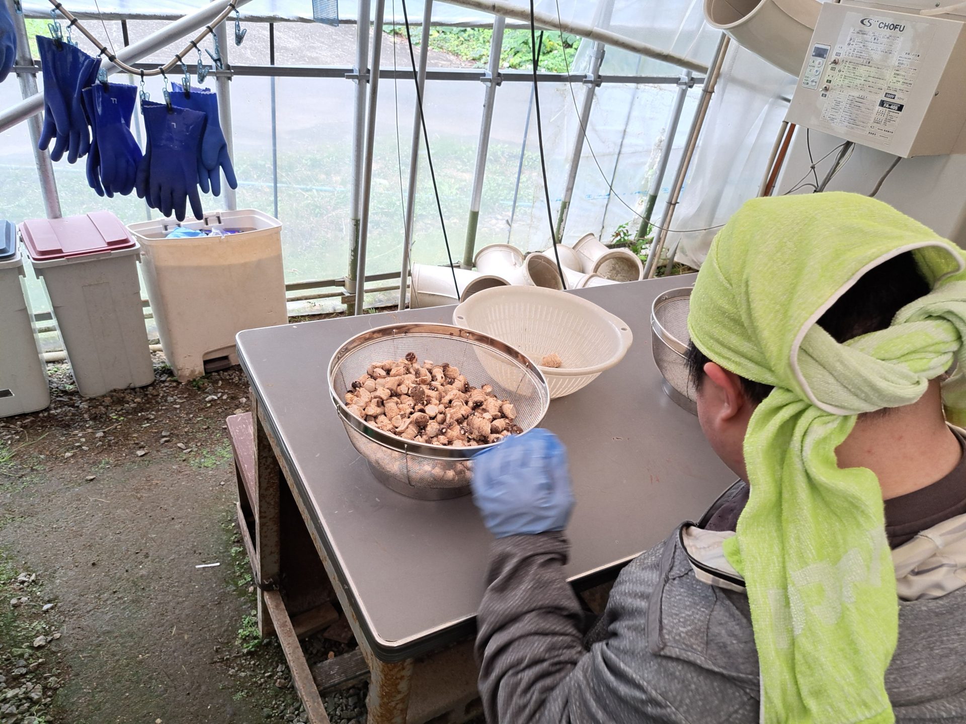 農芸班は先週開けた菌床の芽かき作業がはじまりました~!