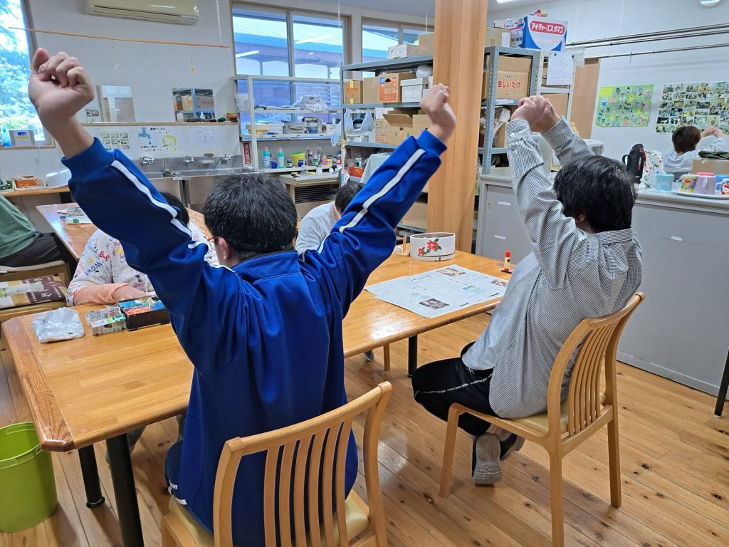 空き缶もたくさん集まって木工班メンバー張り切ってます♪