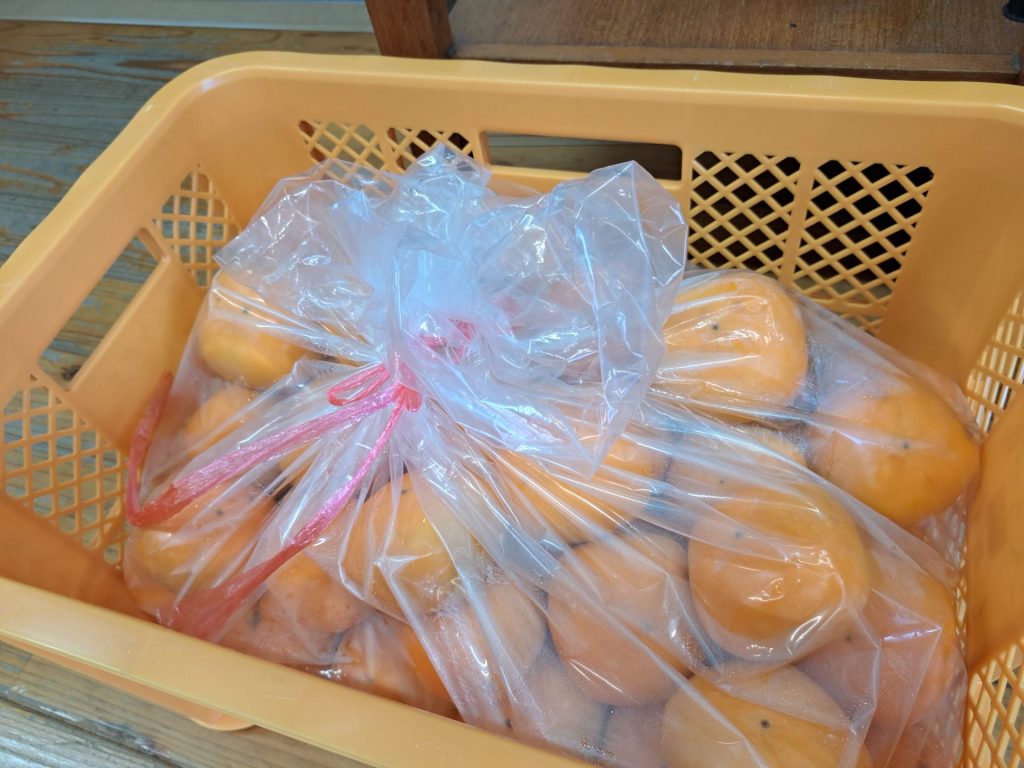 事務室に戻ると大きなコンテナに柿がいっぱい~地域の方からいただいたのを昨日職員でさわしたそうな~来週食べれるの楽しみですね!