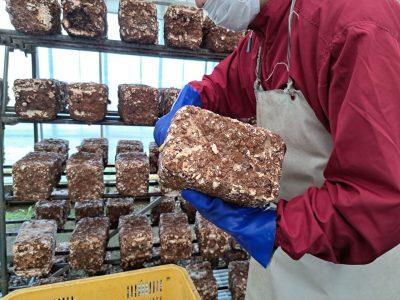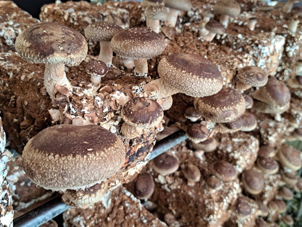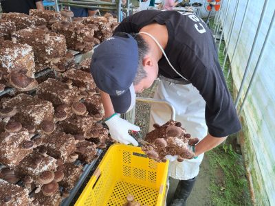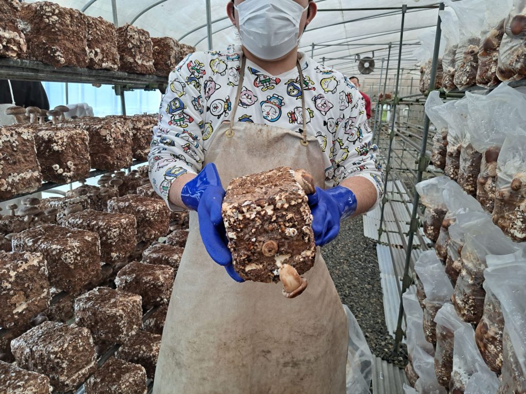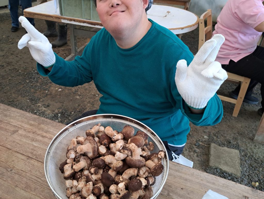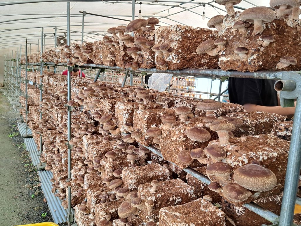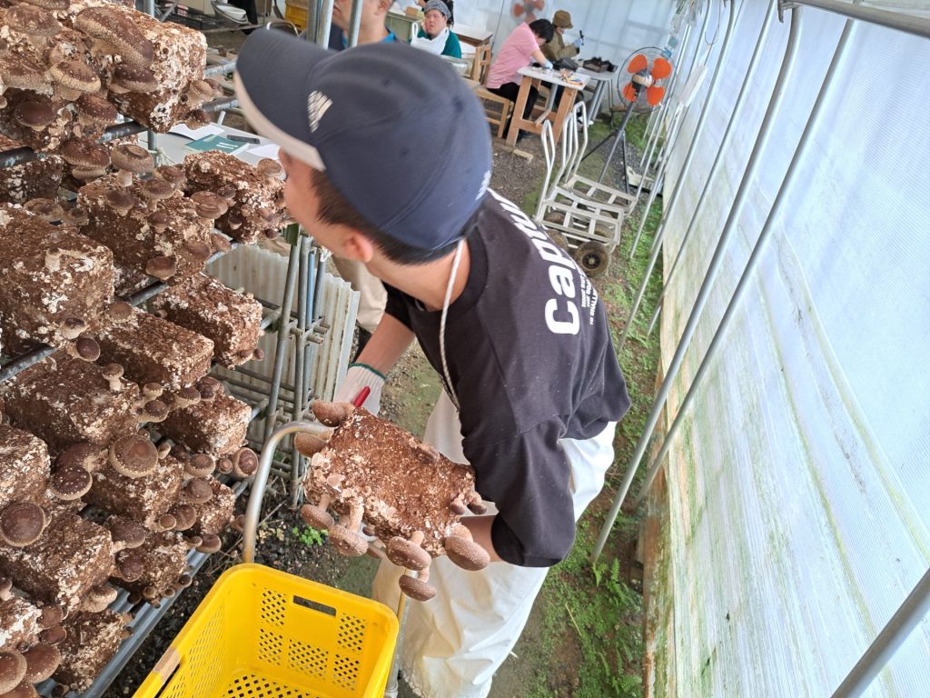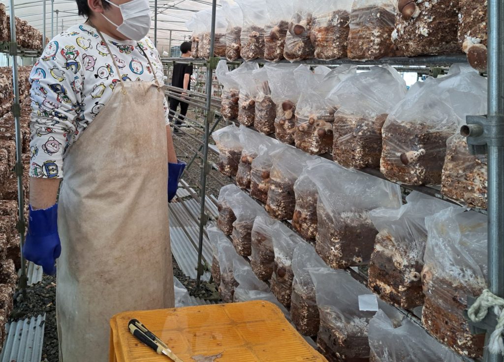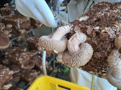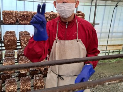 「今日からしいたけの収穫始めるので見に来てください~」と声をかけられていたので、ドキドキハウスを覗くと…