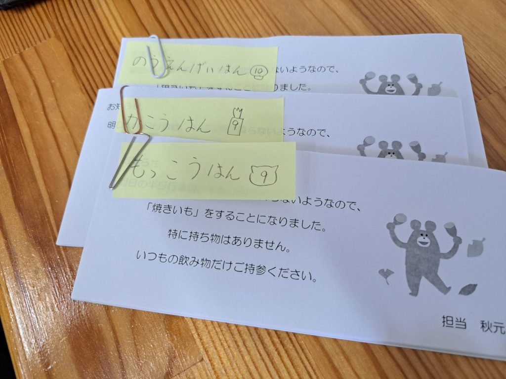 明日は半日行事の日です~ぎりぎり雨が降らないようなので、明日は焼き芋楽しみましょう♪