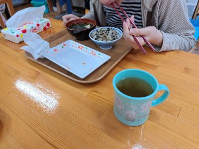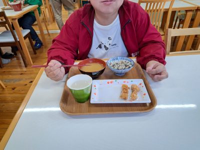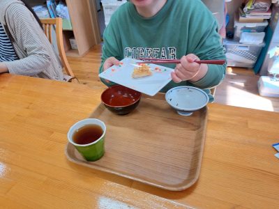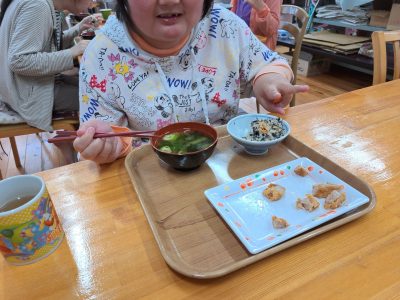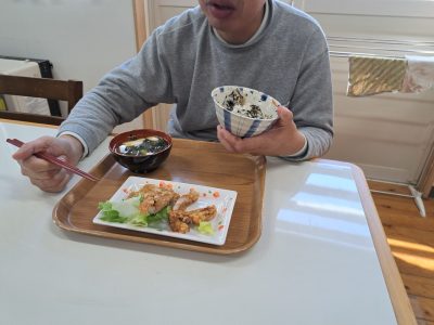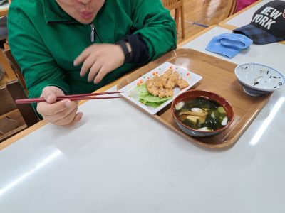 今日が最後の実習になる鶴養の生徒さん~最後にさくらが丘ナンバーワン竜田揚げ&ひじきご飯を食べてもらって嬉しい♪