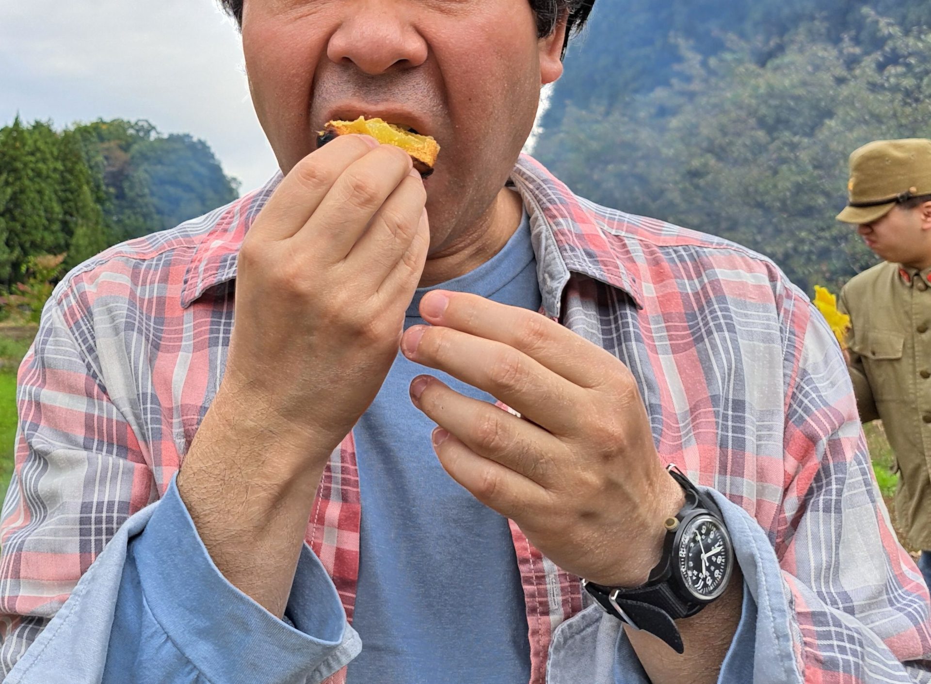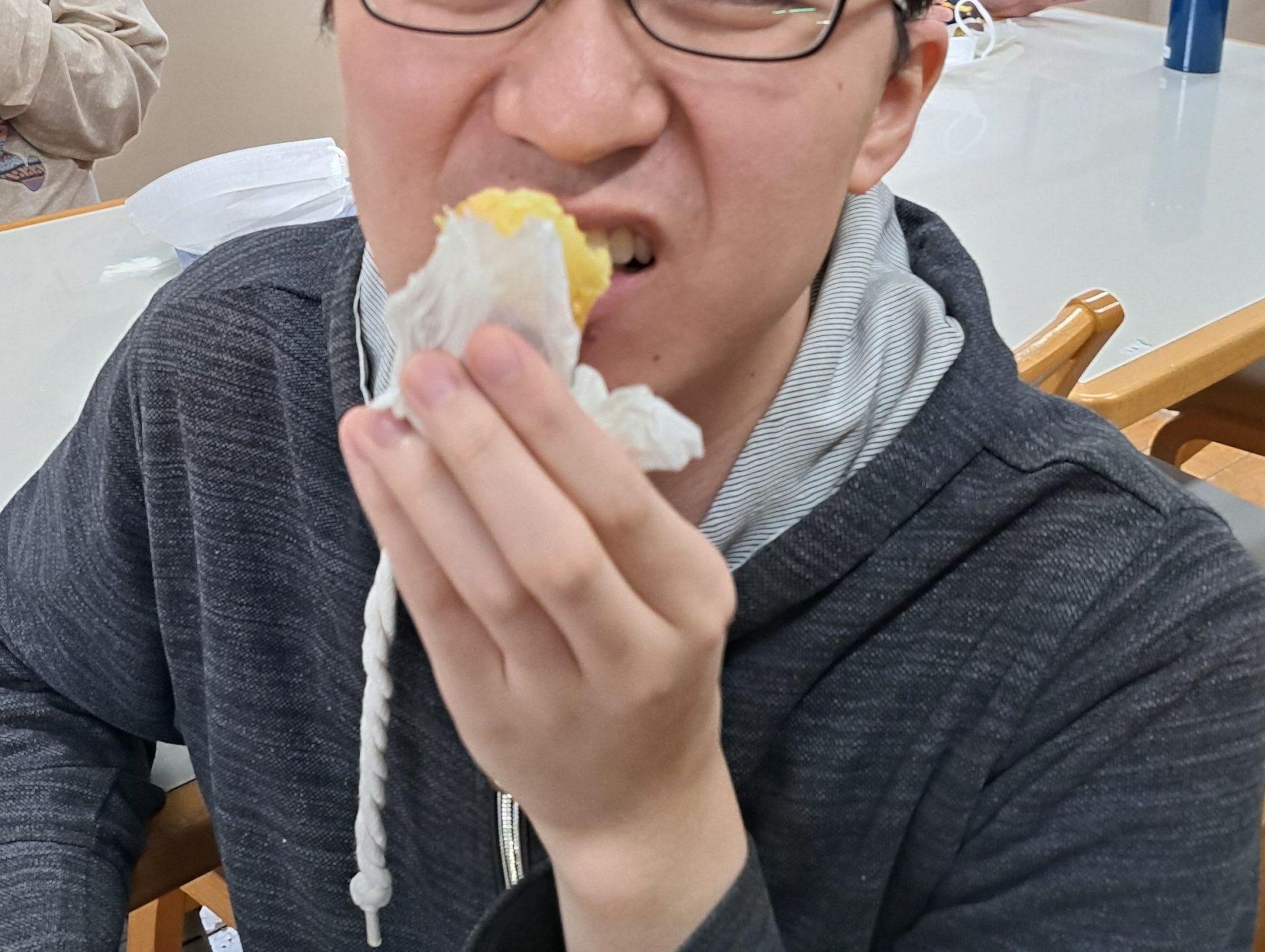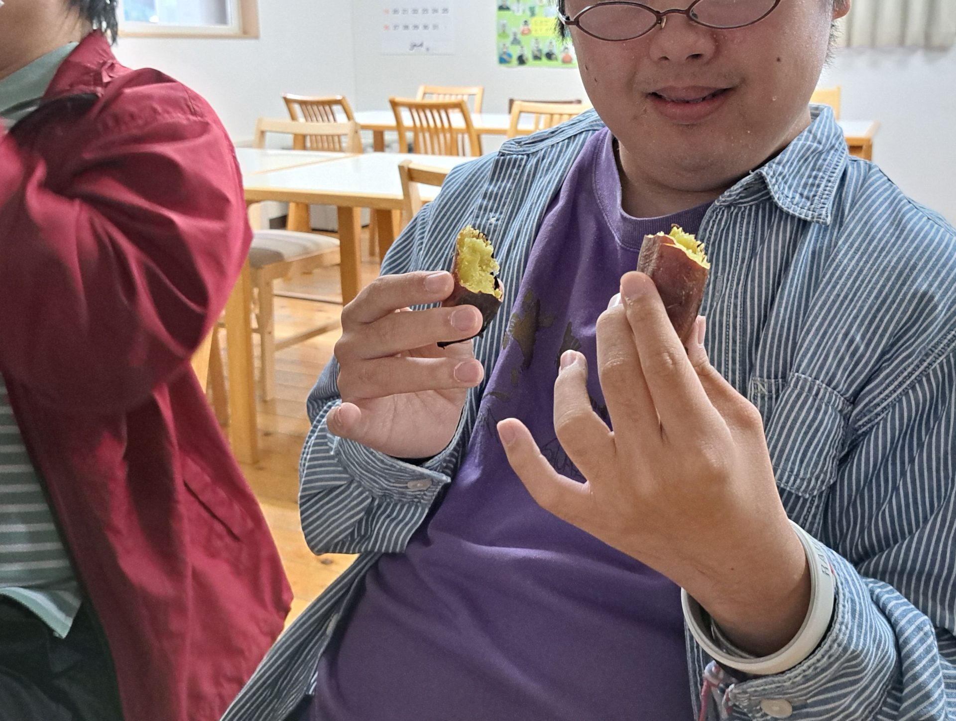 まずは一番火のそばで見守っていた利用者さんがパクリ♪「うーーーん!おいしいです!!」
