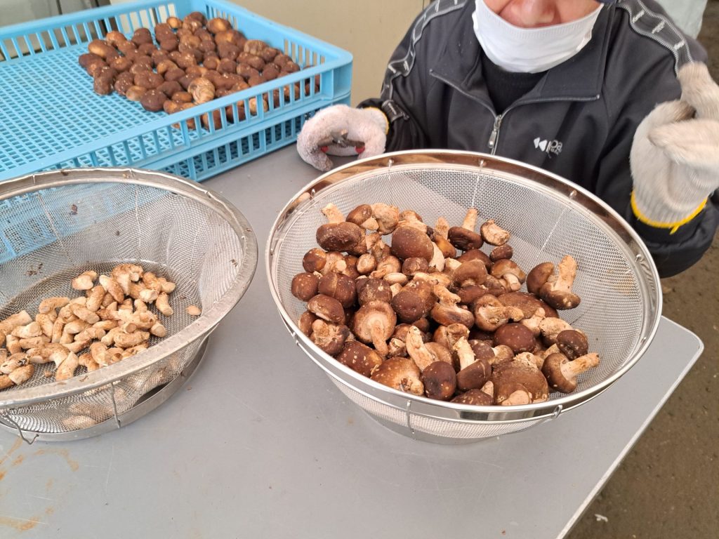 小さいしいたけも足切りして乾燥しいたけになります~♪