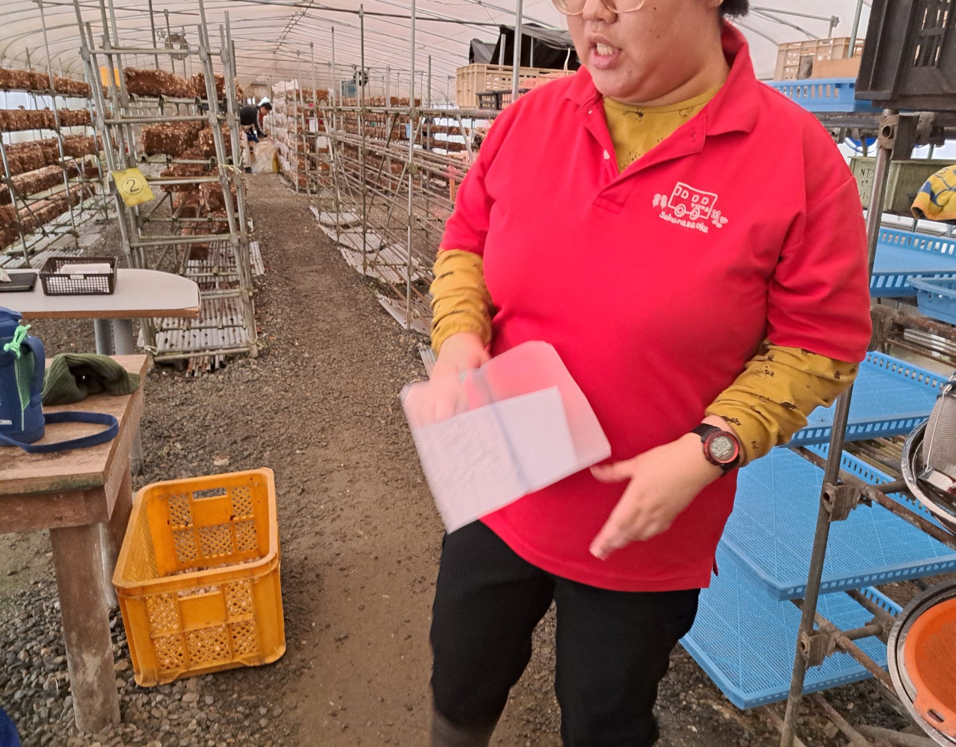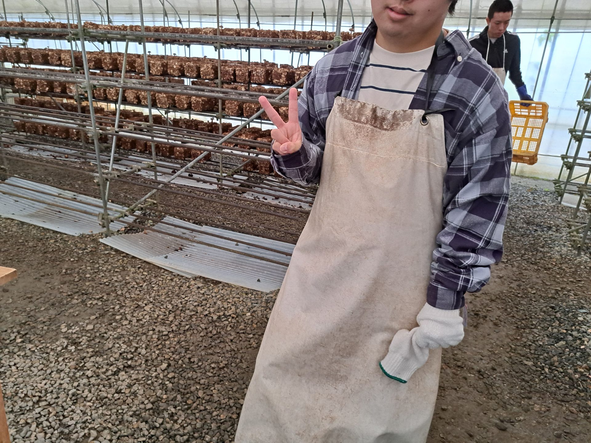 今日は実習生さんも乾燥しいたけの軸切りをがんばってくれました~♪