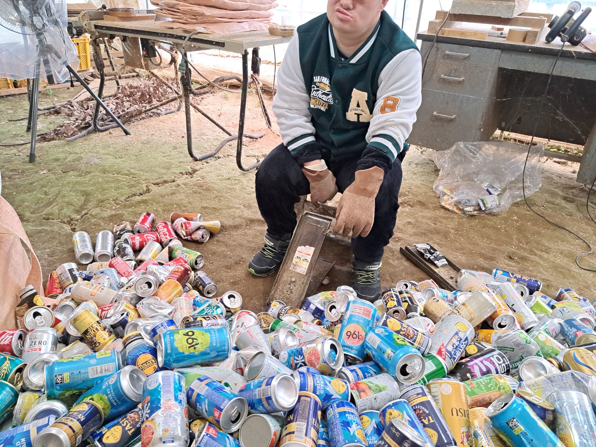 木工班の空き缶つぶしも頑張ってますね~(*^-^*)
