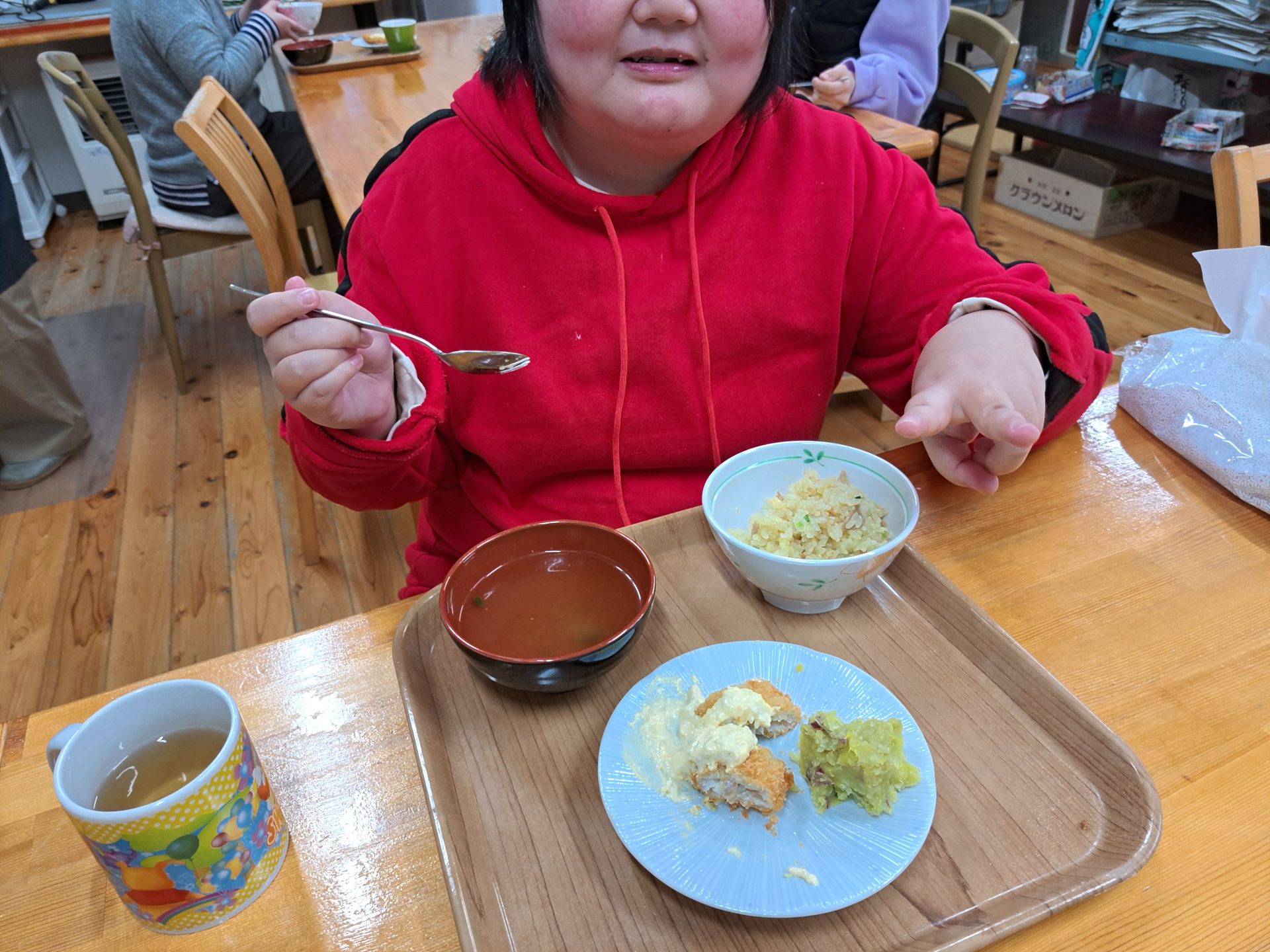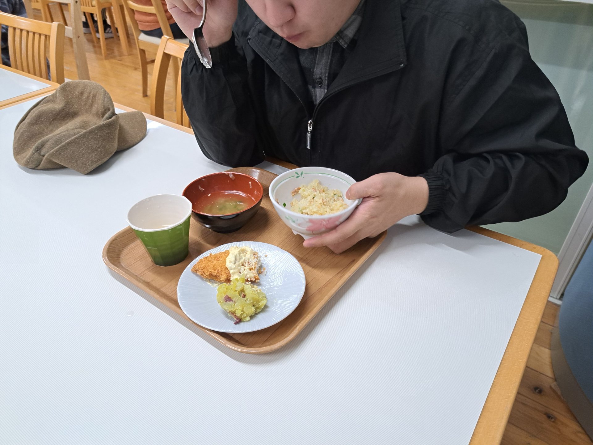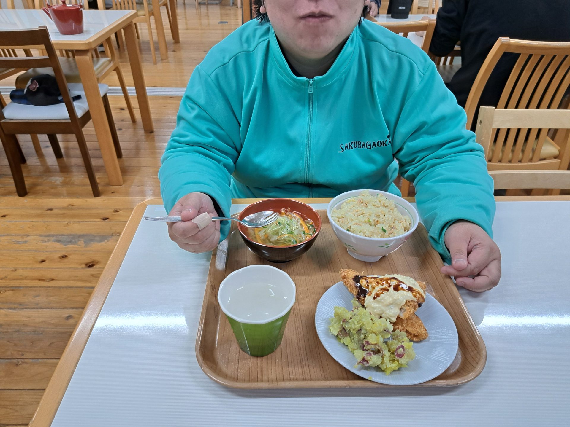 実習生さんもおいしそうに食べてくれて嬉しい♪さくらが丘の給食は最高だよ~(*´▽`*)