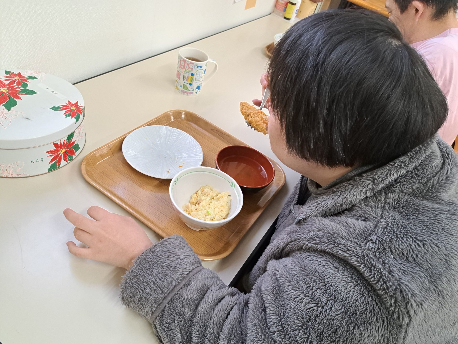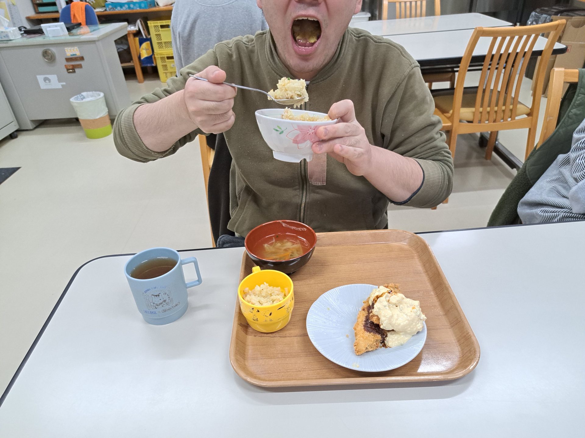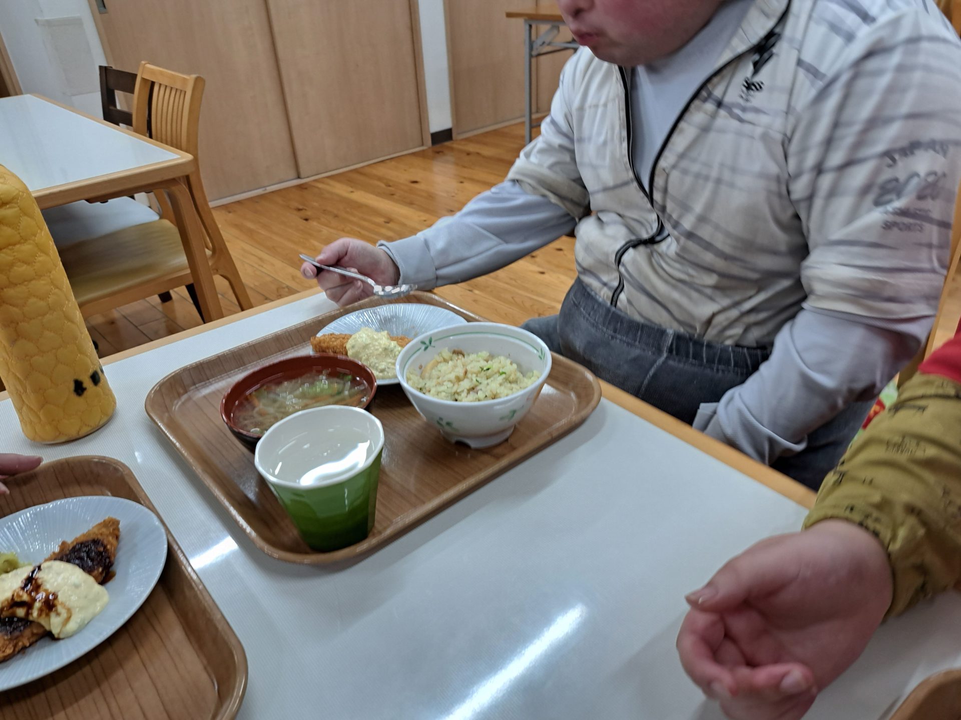 実習生さんもおいしそうに食べてくれて嬉しい♪さくらが丘の給食は最高だよ~(*´▽`*)