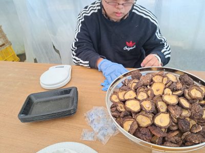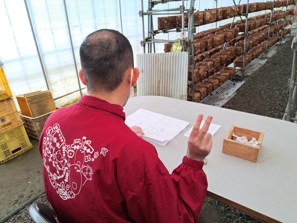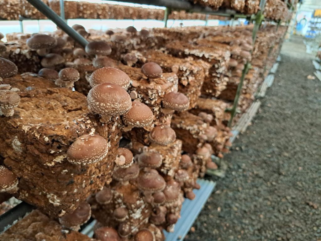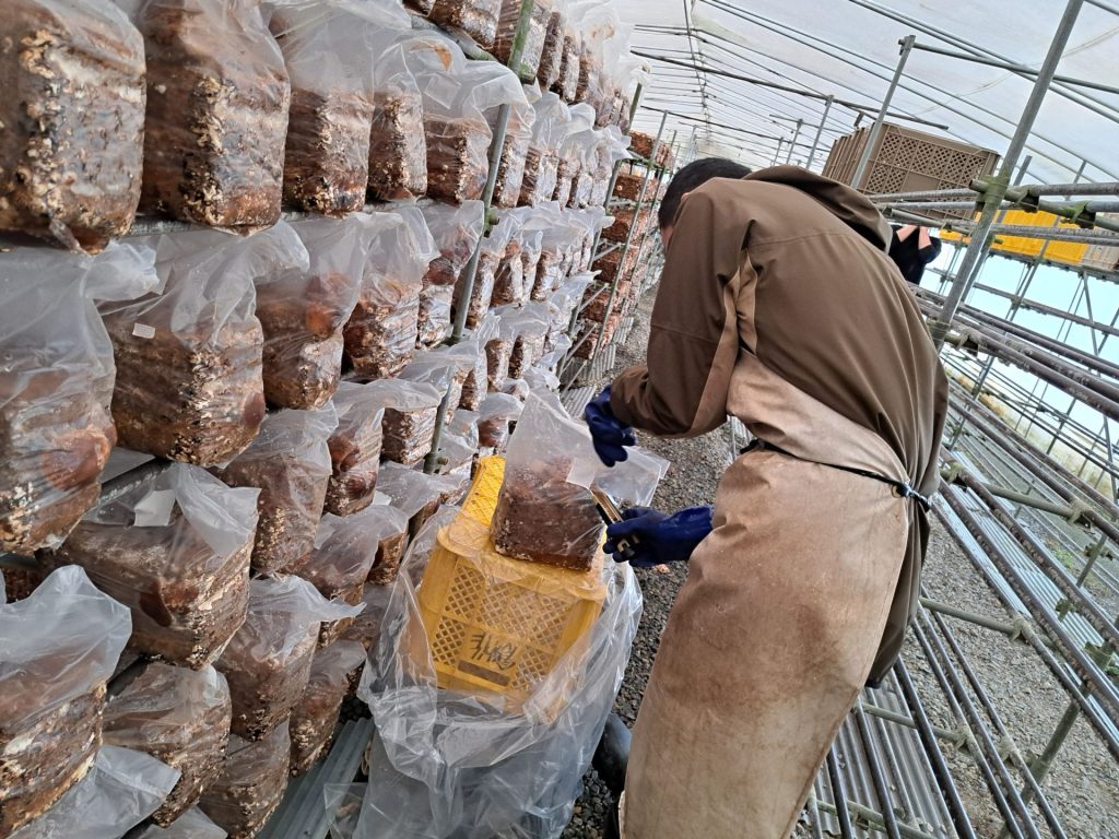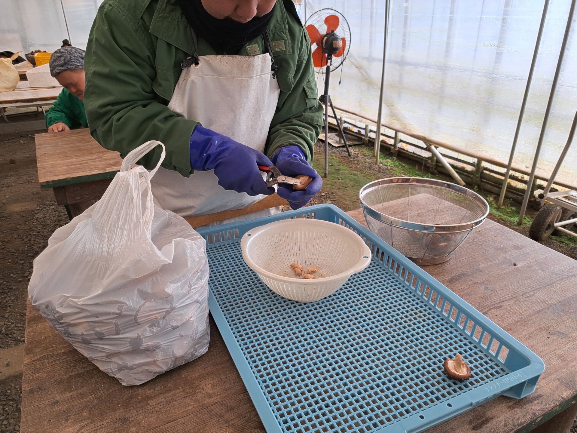 ハウスでは今日もしいたけがニョキニョキ~♪