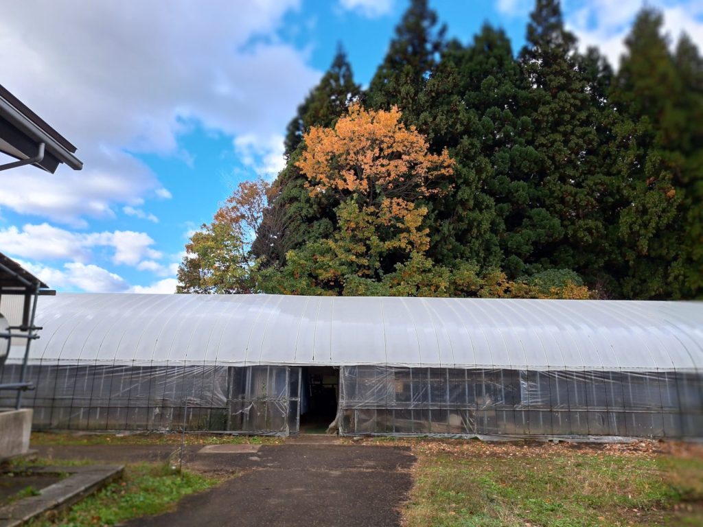 ハウスの向うの木々の紅葉がキレイですね~でも寒い!!((+_+))