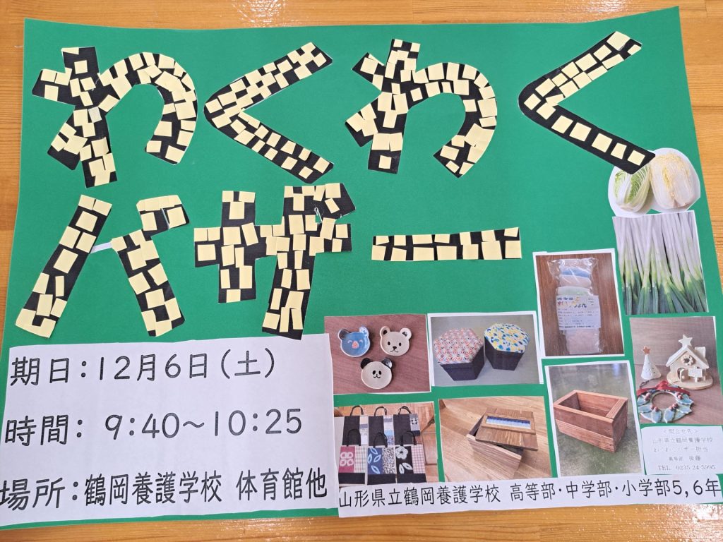 鶴岡養護学校さんからバザーのポスターが届きました~いつも手作りのポスターいいですよね~学生さんのがんばりが伝わってきます~(*^-^*)