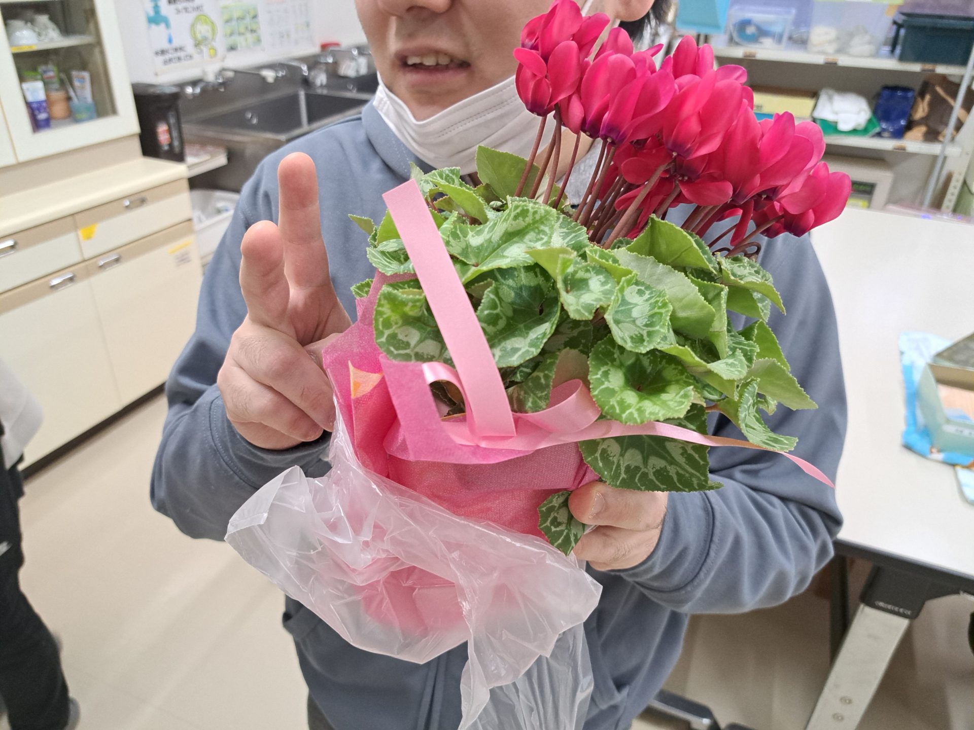 キレイなシクラメンだ~♪葉っぱの紋がキレイ~( *´艸`)