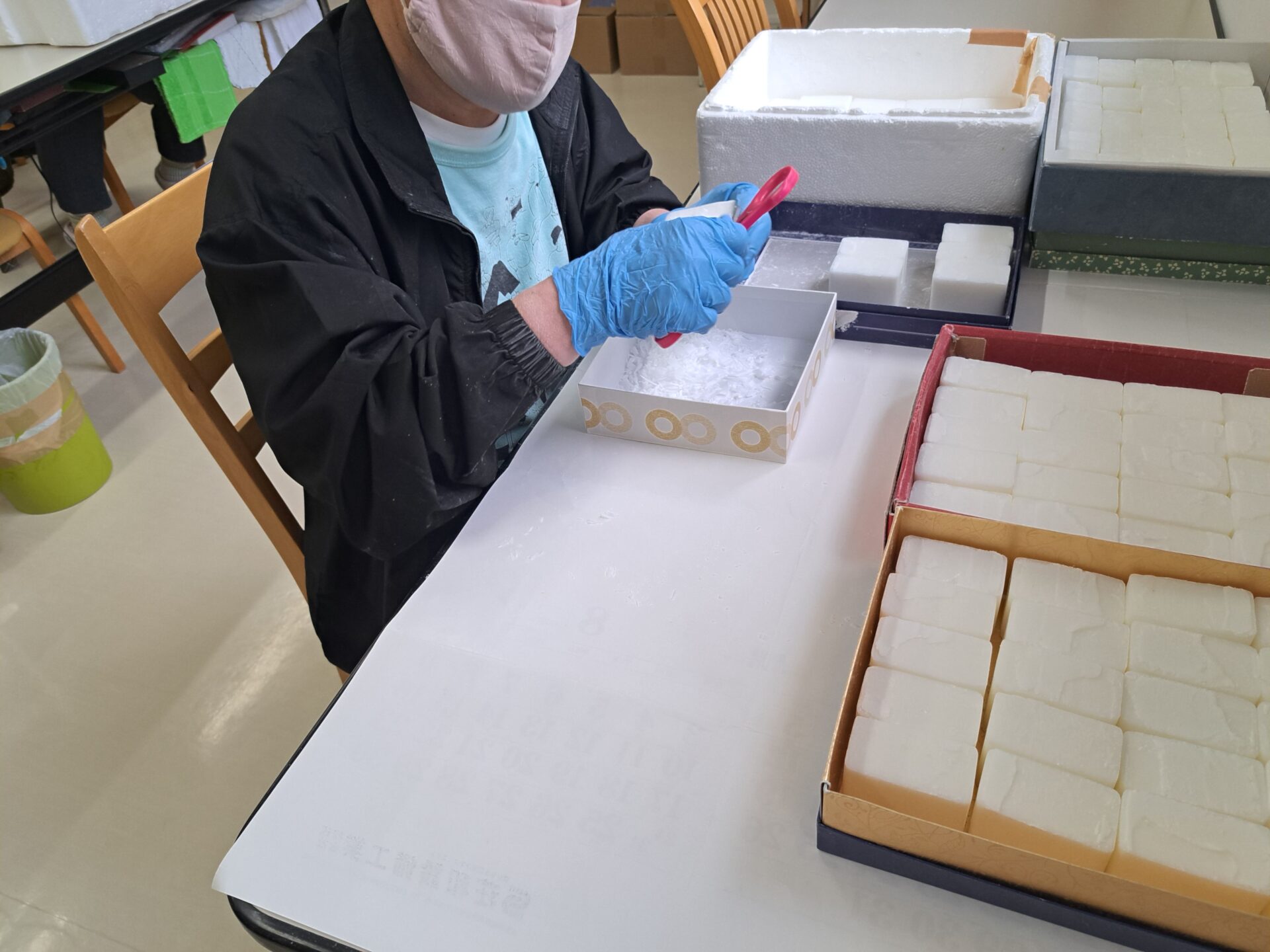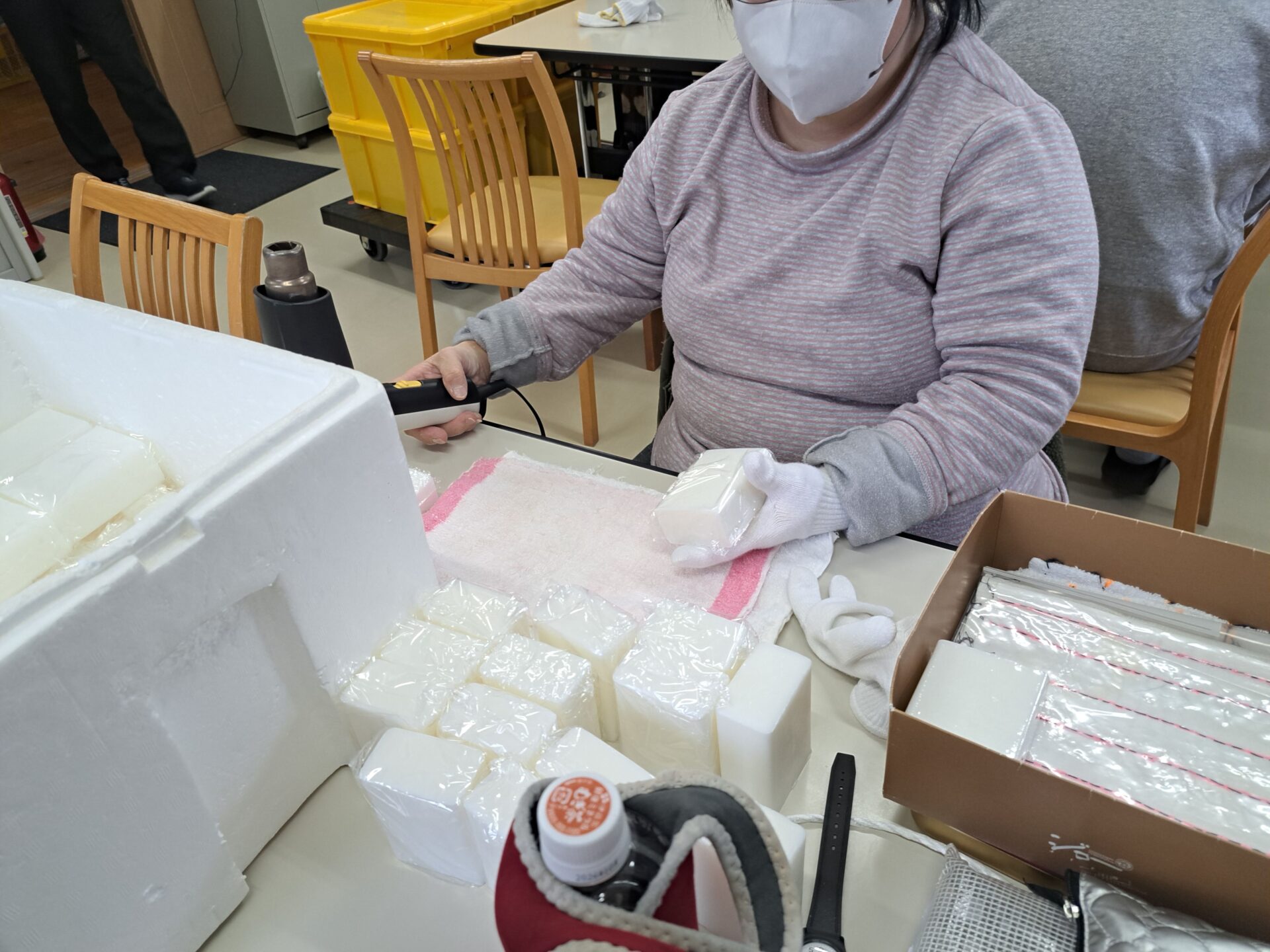 加工班はゆぽかからシャンプーの空箱到着~がんばるぞ!」