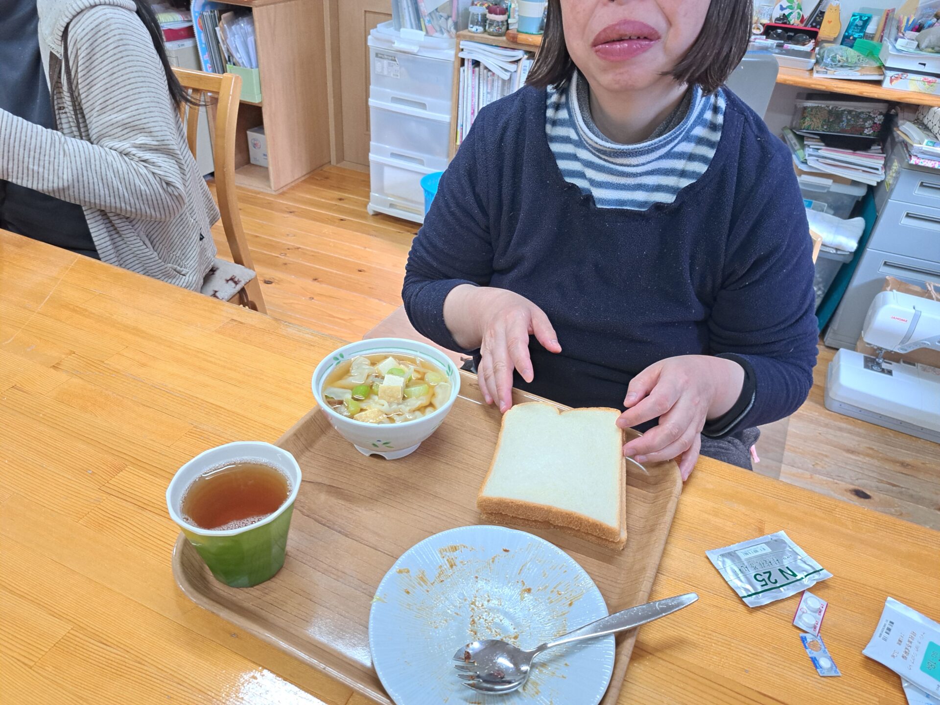 具だくさんワンタンスープはめちゃ美味しいんです~♪パンを浸しても良し♡