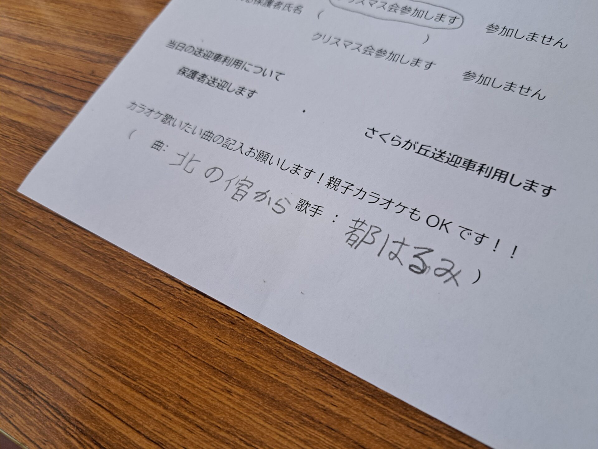- あ、その前にクリスマス会の申し込み出してね~♪