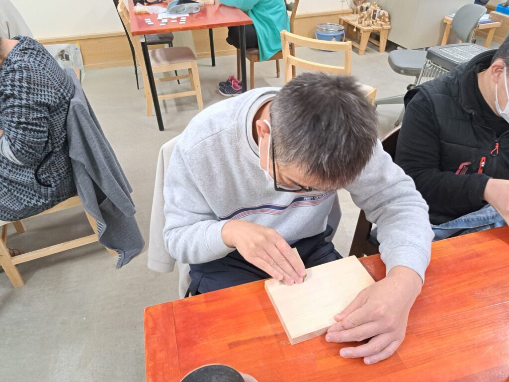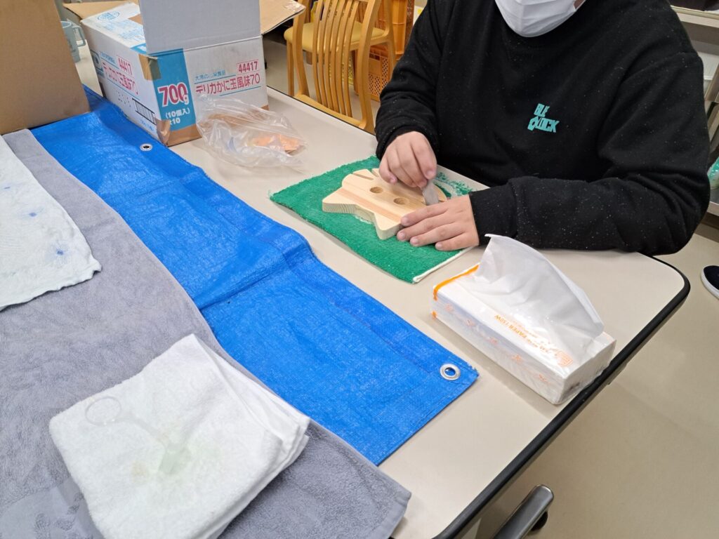 木工班ではみんな一生懸命ヤスリがけ~(/・ω・)/
