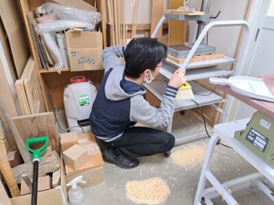 - 隙間に入り込んだ木くずも丁寧に掃除してます~♪