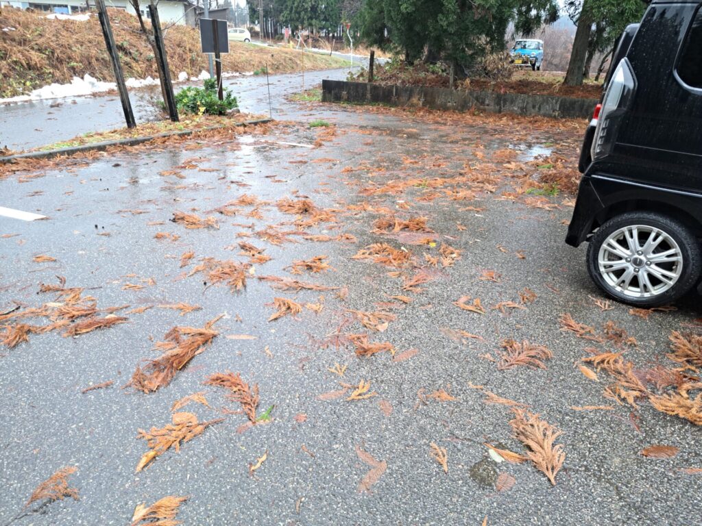 そして風で落ちてきた杉の葉が散乱…片付けたいけど雨が~( ;∀;)