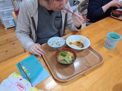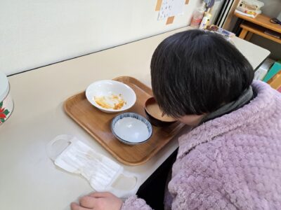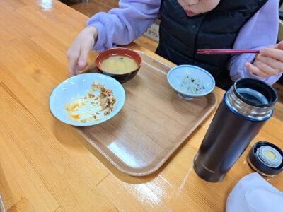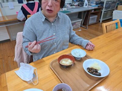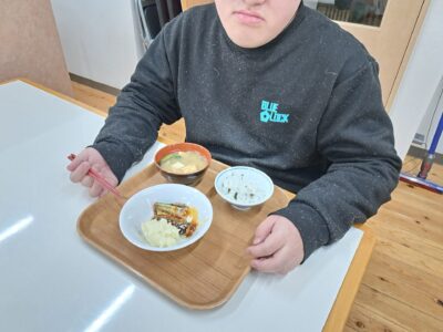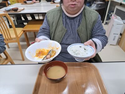 今日の給食は~魚の甘露煮でわかめご飯パクパク~♪