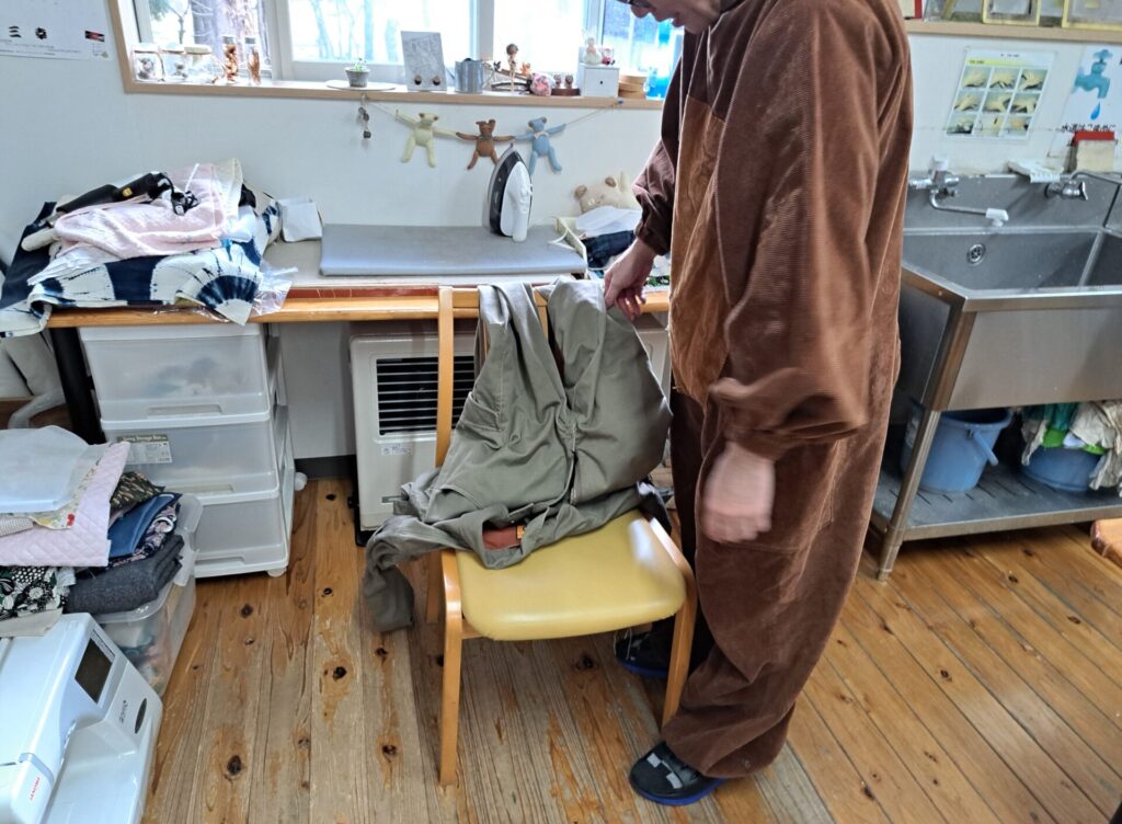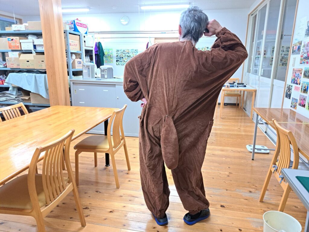 いつもつなぎの作業服を着ているので違和感ない~(/・ω・)/