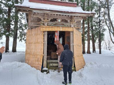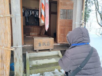 「なんかずっと雪降ってるね~また積もるかな?みんなお賽銭は持ったかな?」