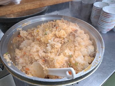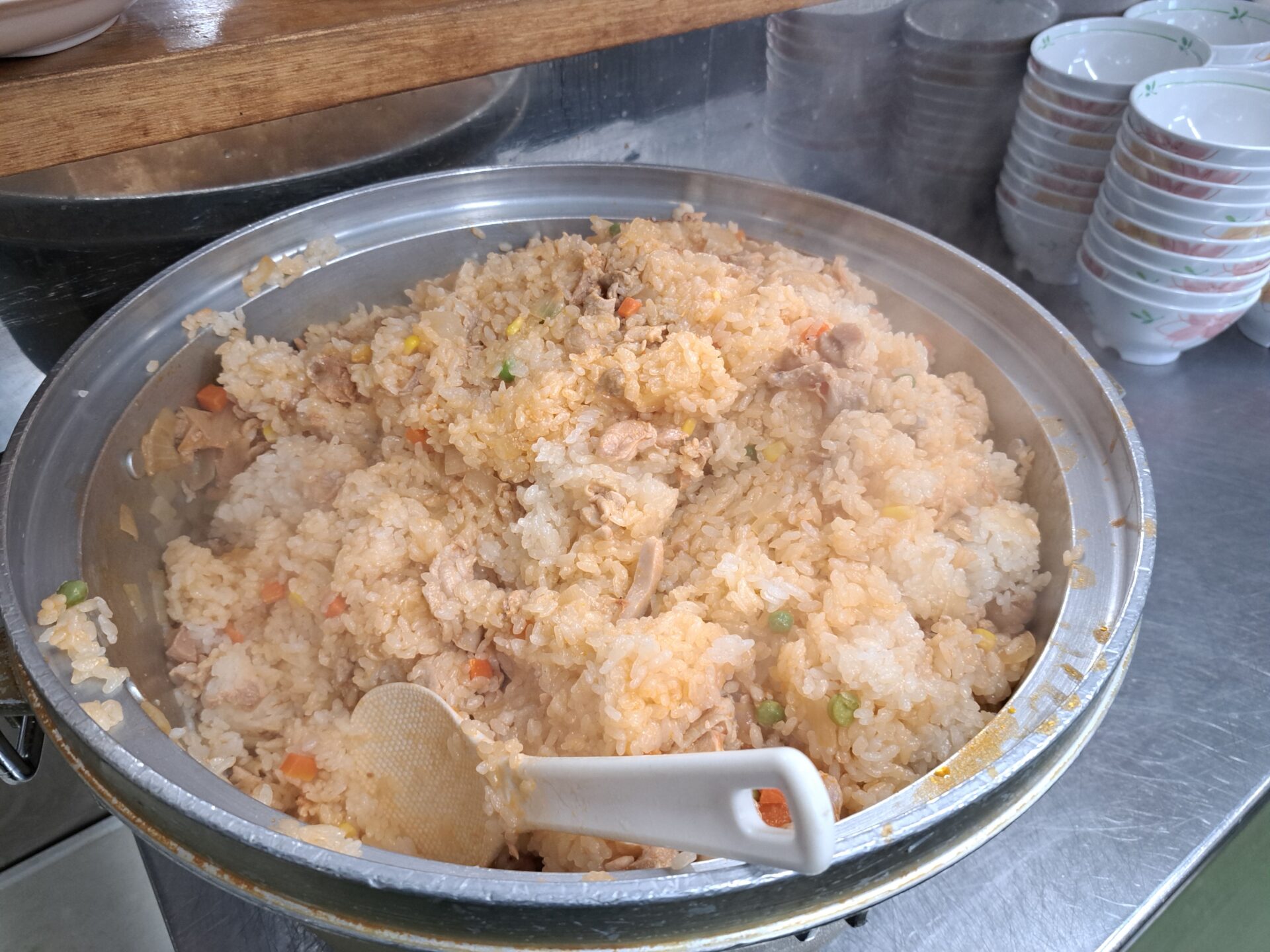- 「小豆ご飯だっけ~赤飯とちょっと違うなやの~あと目玉焼き♪」