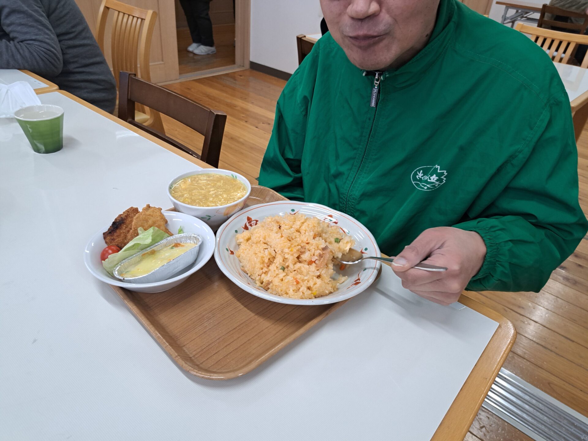 - 「長いも、目玉焼き、ハム、キャベツ、唐揚げ、お茶飲んで終わり~」