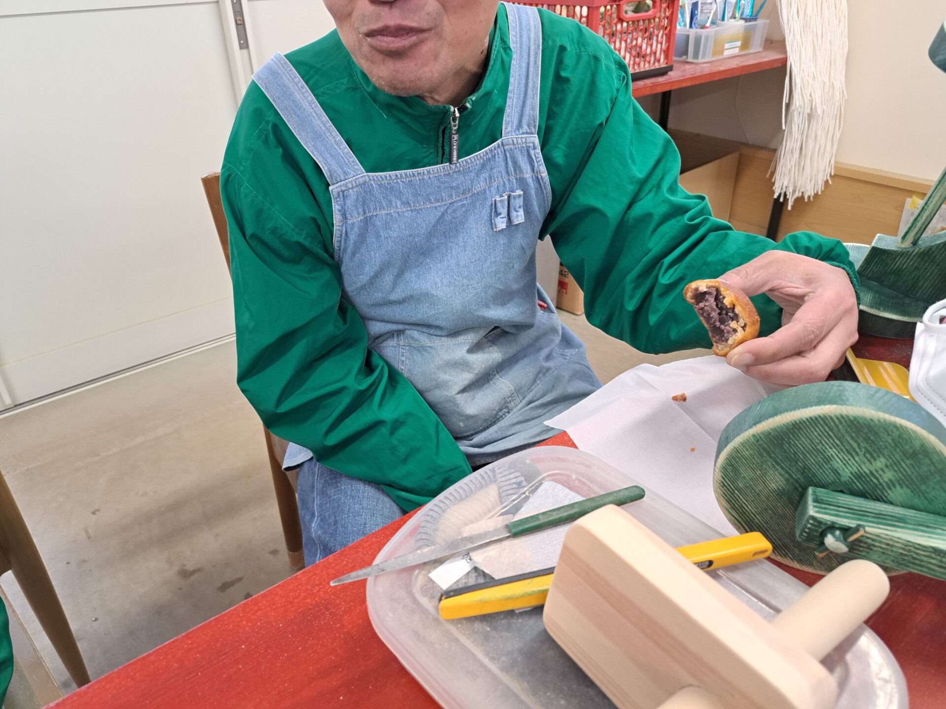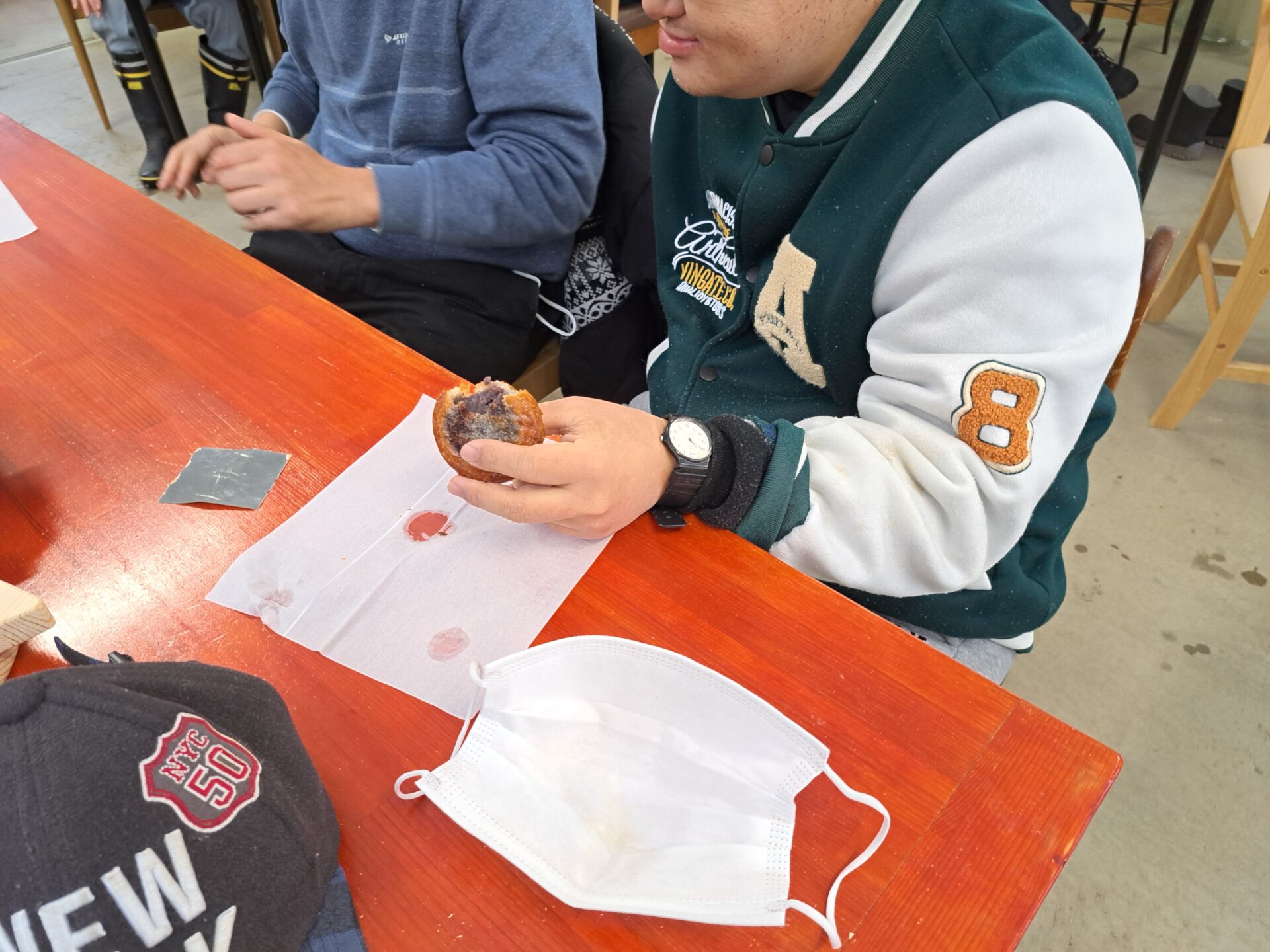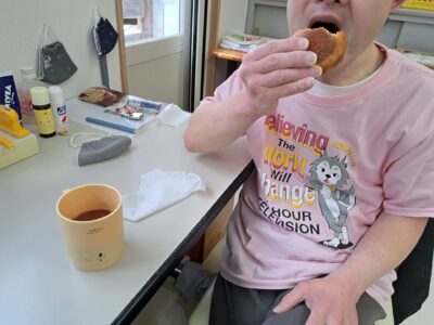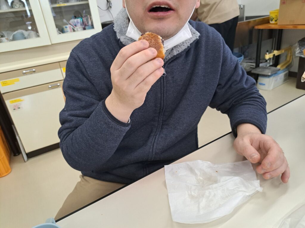 今日は10時半の休憩の時に、たくさんいただいたお饅頭を厨房で揚げてくれて~(*´ω`*)
