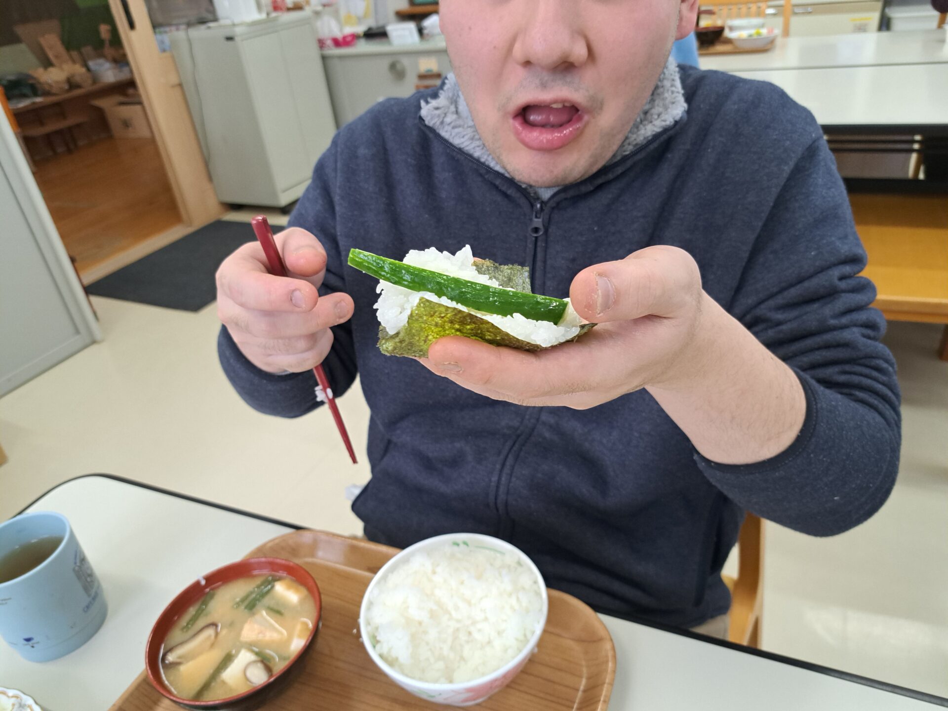 今日のおいしい給食は手巻き寿司~やった!!(^^)!