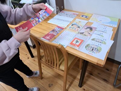 昼休み~今日は事業所で残っているカレンダーを欲しい利用者さんにあげよう~という定例企画がありました~欲しい人は13時で食堂ホールに集合♪(/・ω・)/