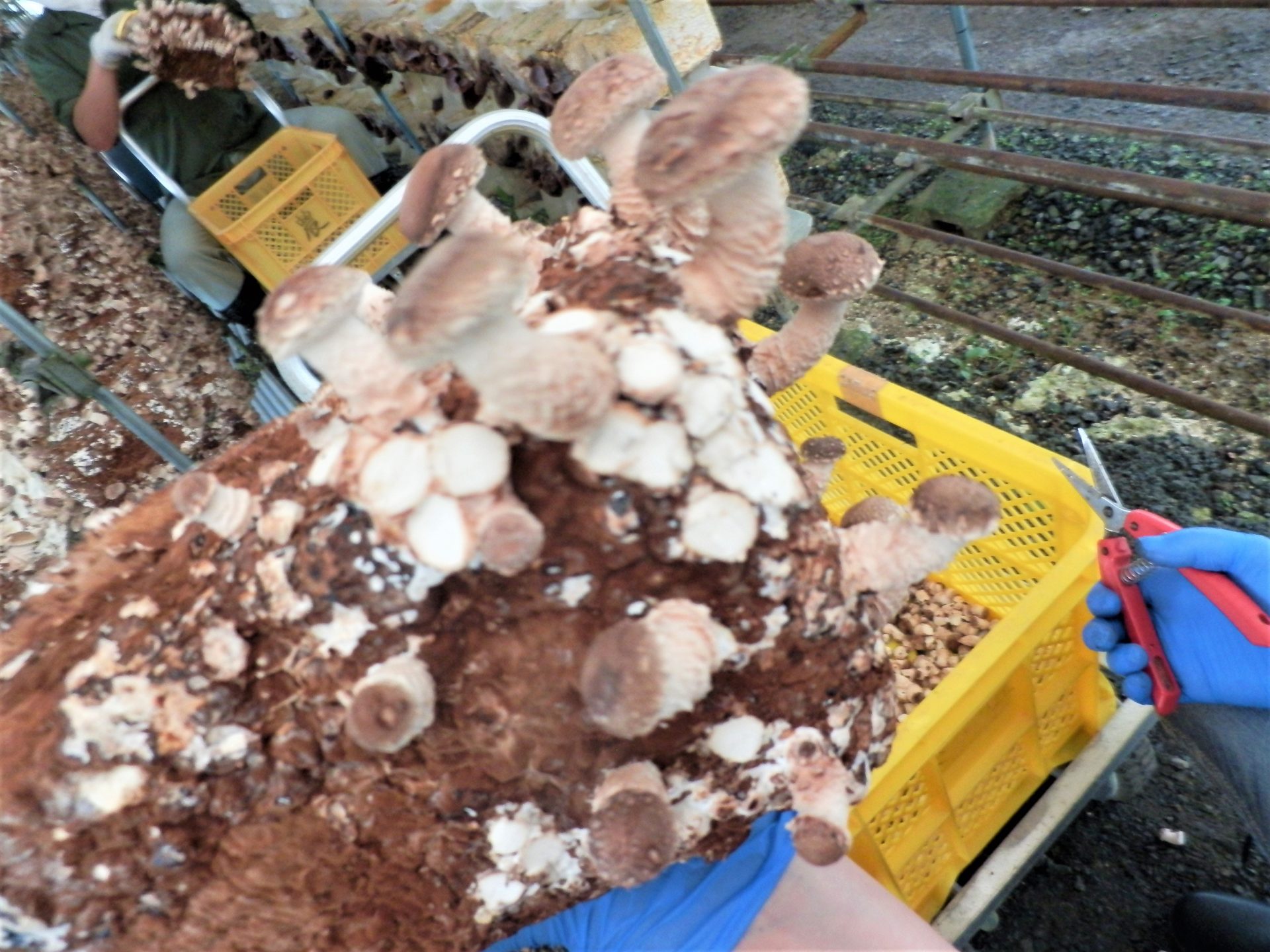 これもどれが収穫していい椎茸なのか、瞬時に判断するところが熟練の技!すごい!