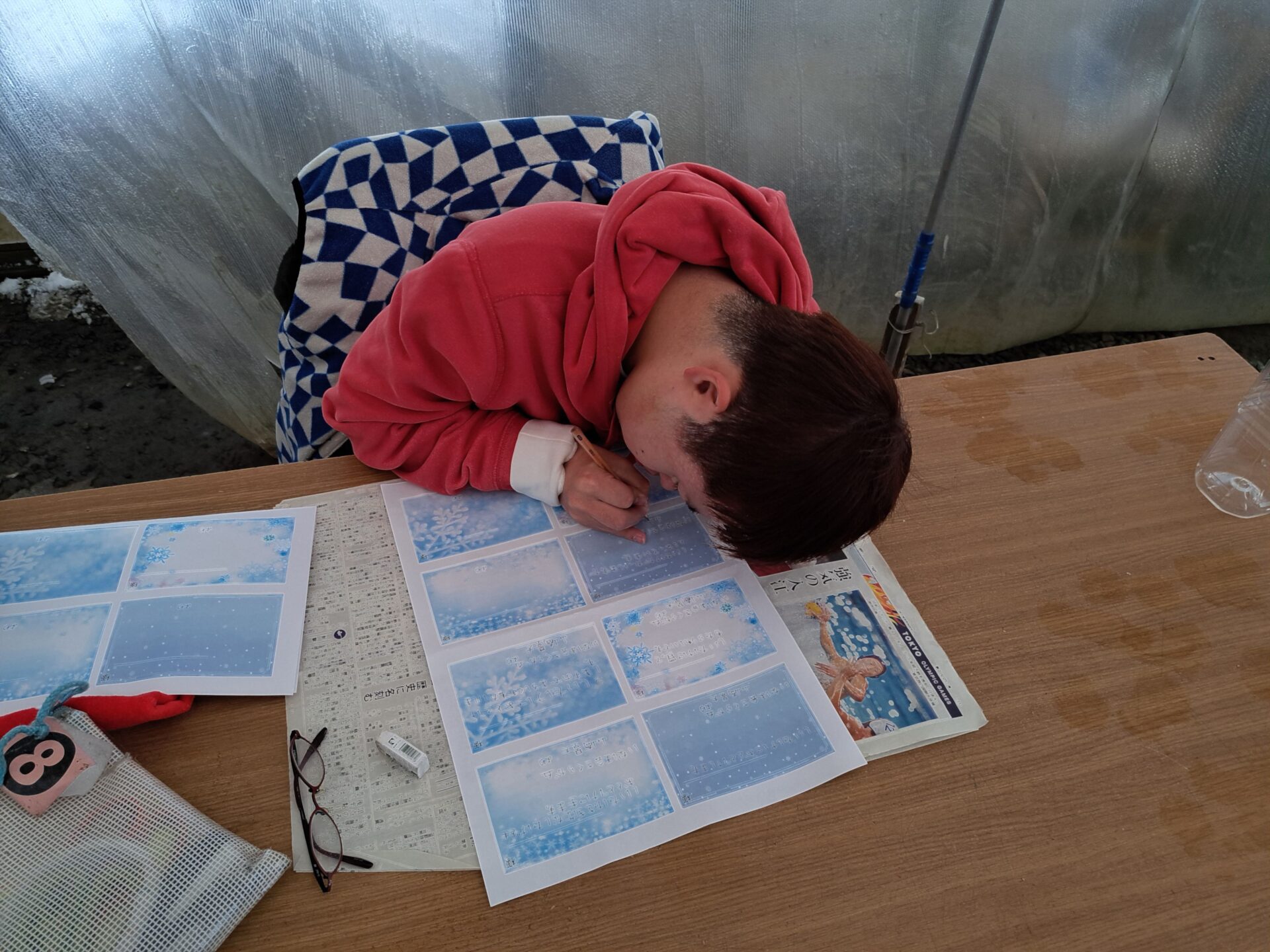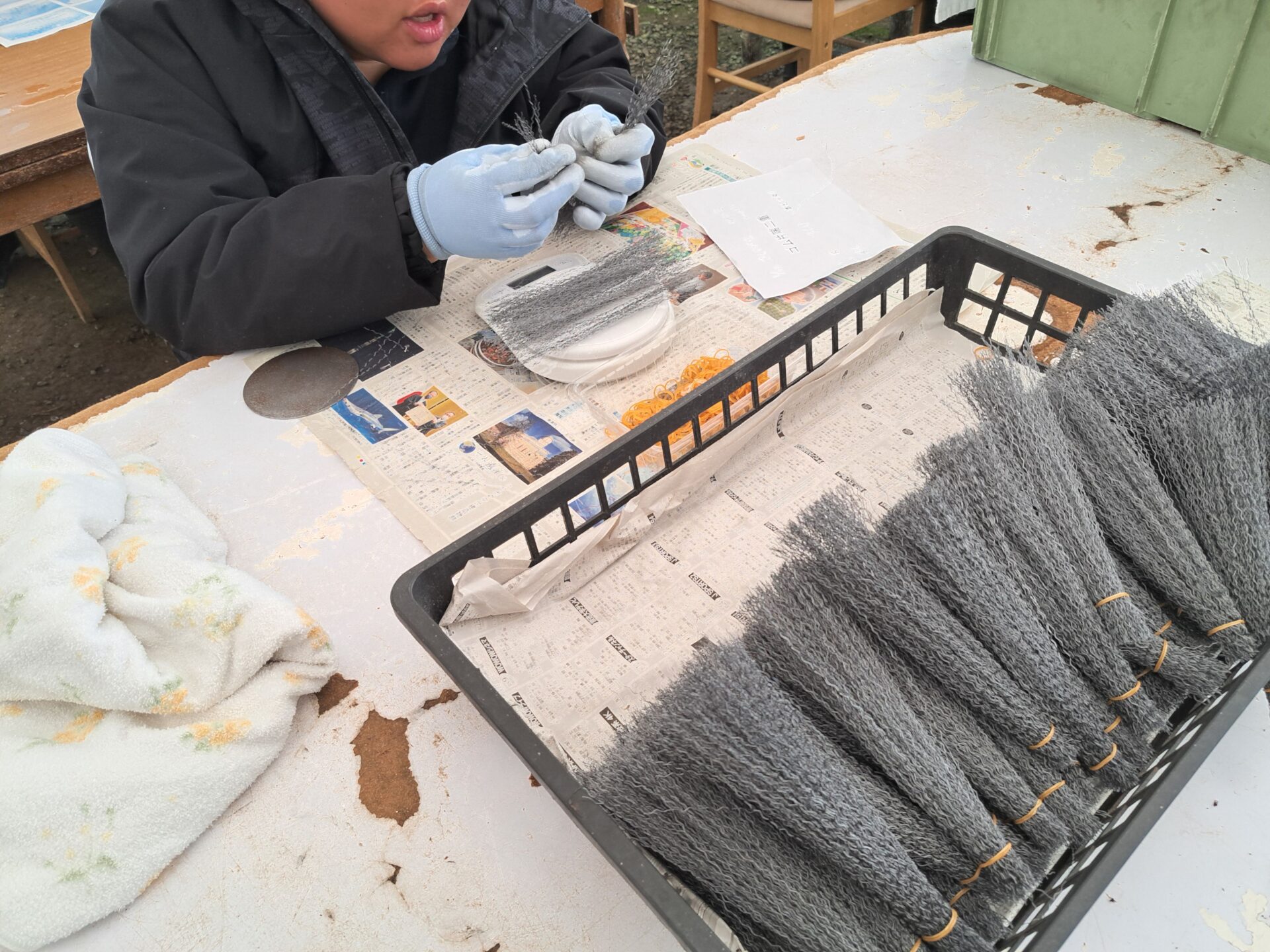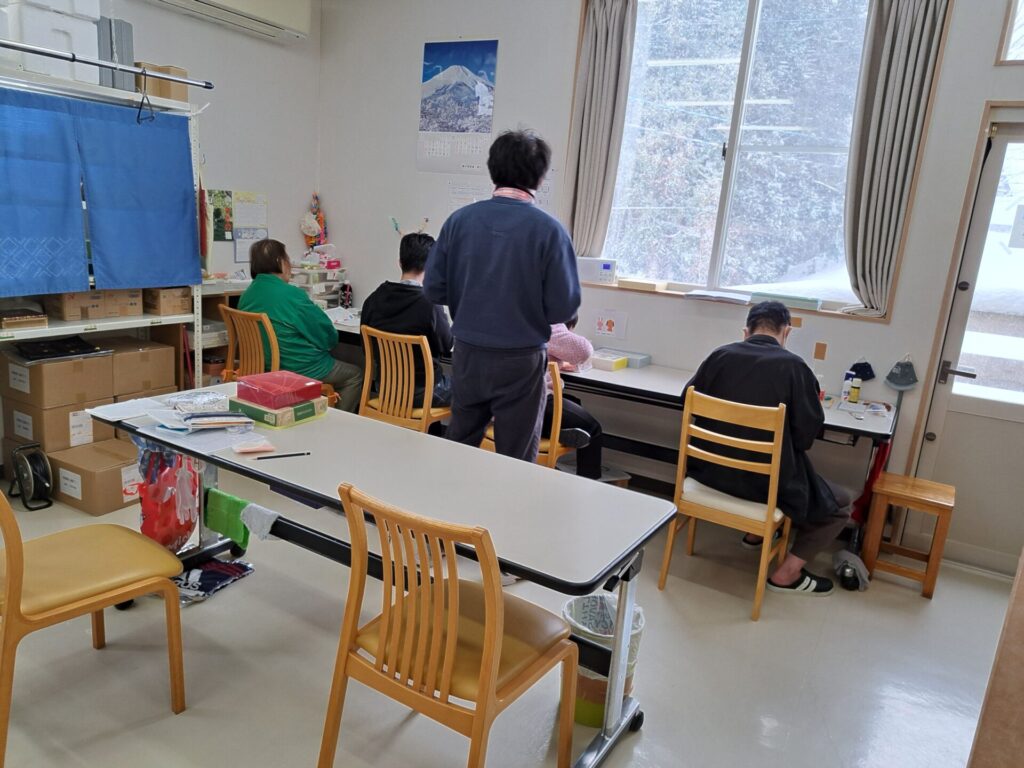 加工室では並んでそれぞれ静かに過ごしてますね~1名熟睡している人もいます(笑)