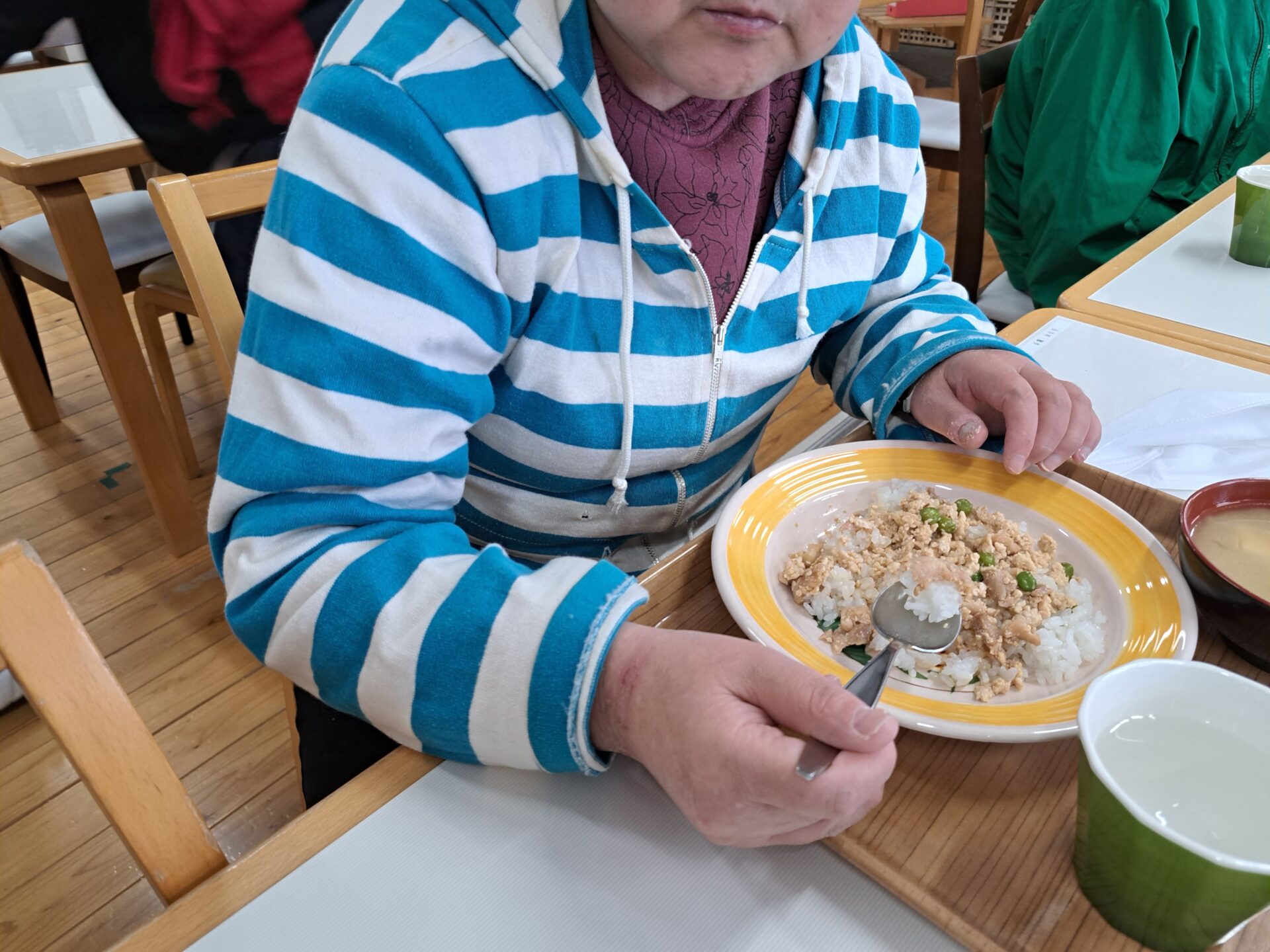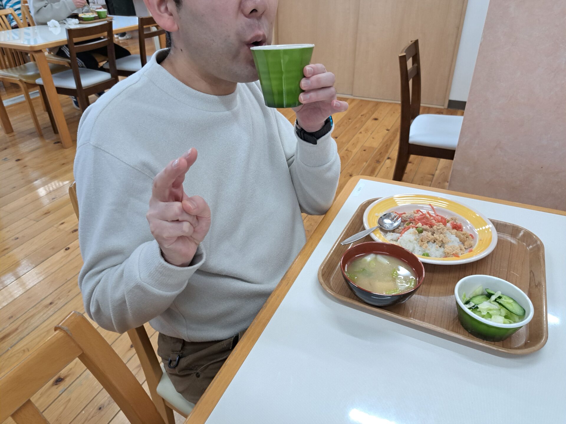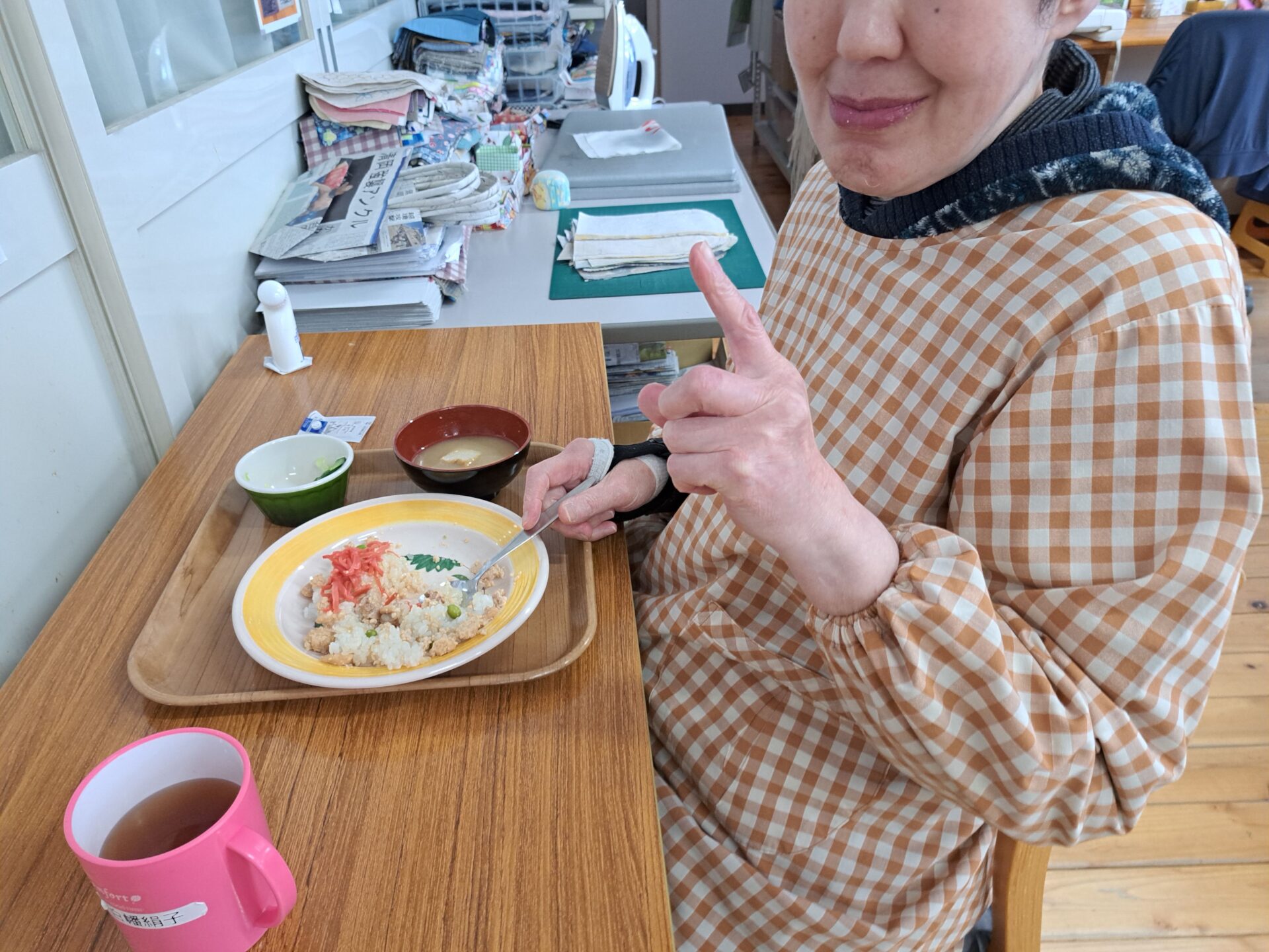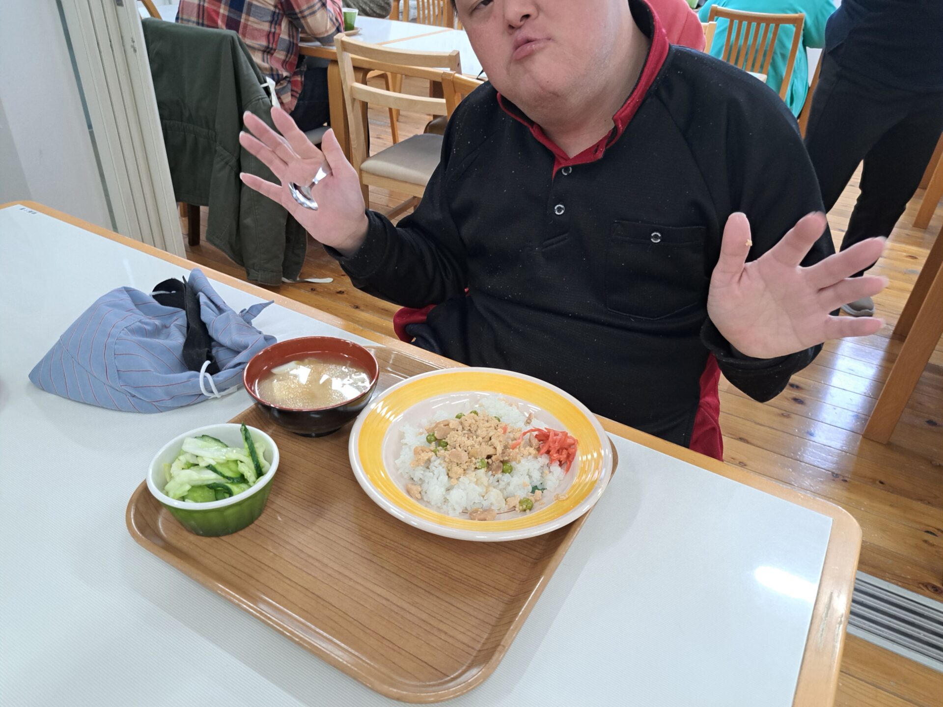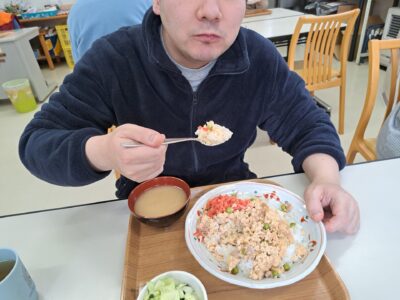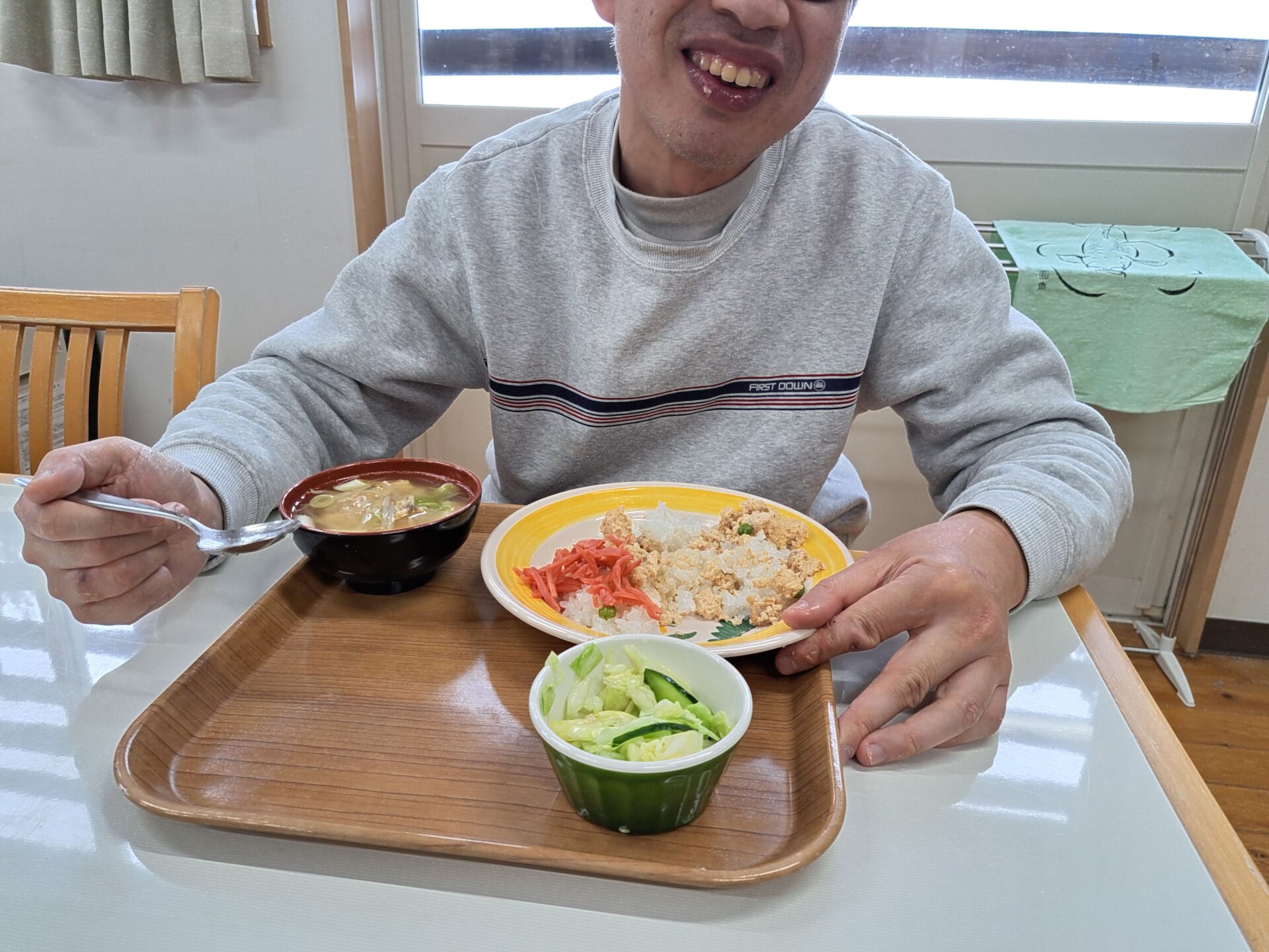 無事にお休みから復活した利用者さん~元気そうで良かった!「納豆ご飯食べてきたぞ~!」われもわれも~♪