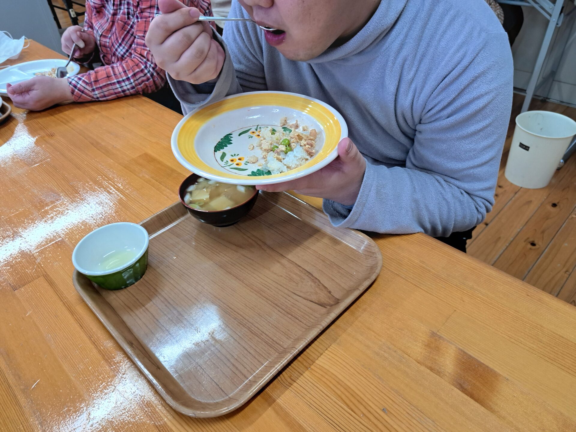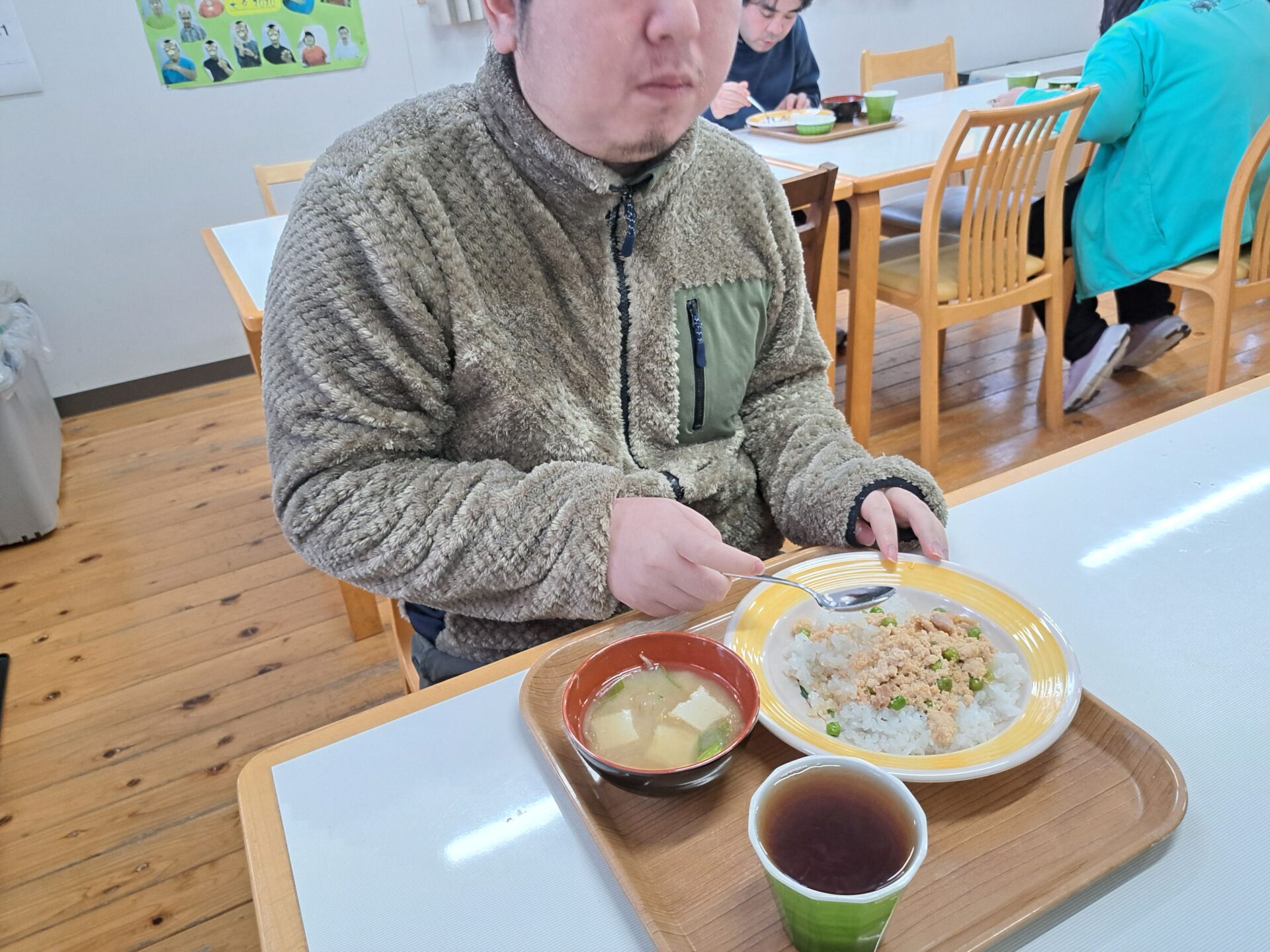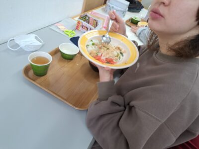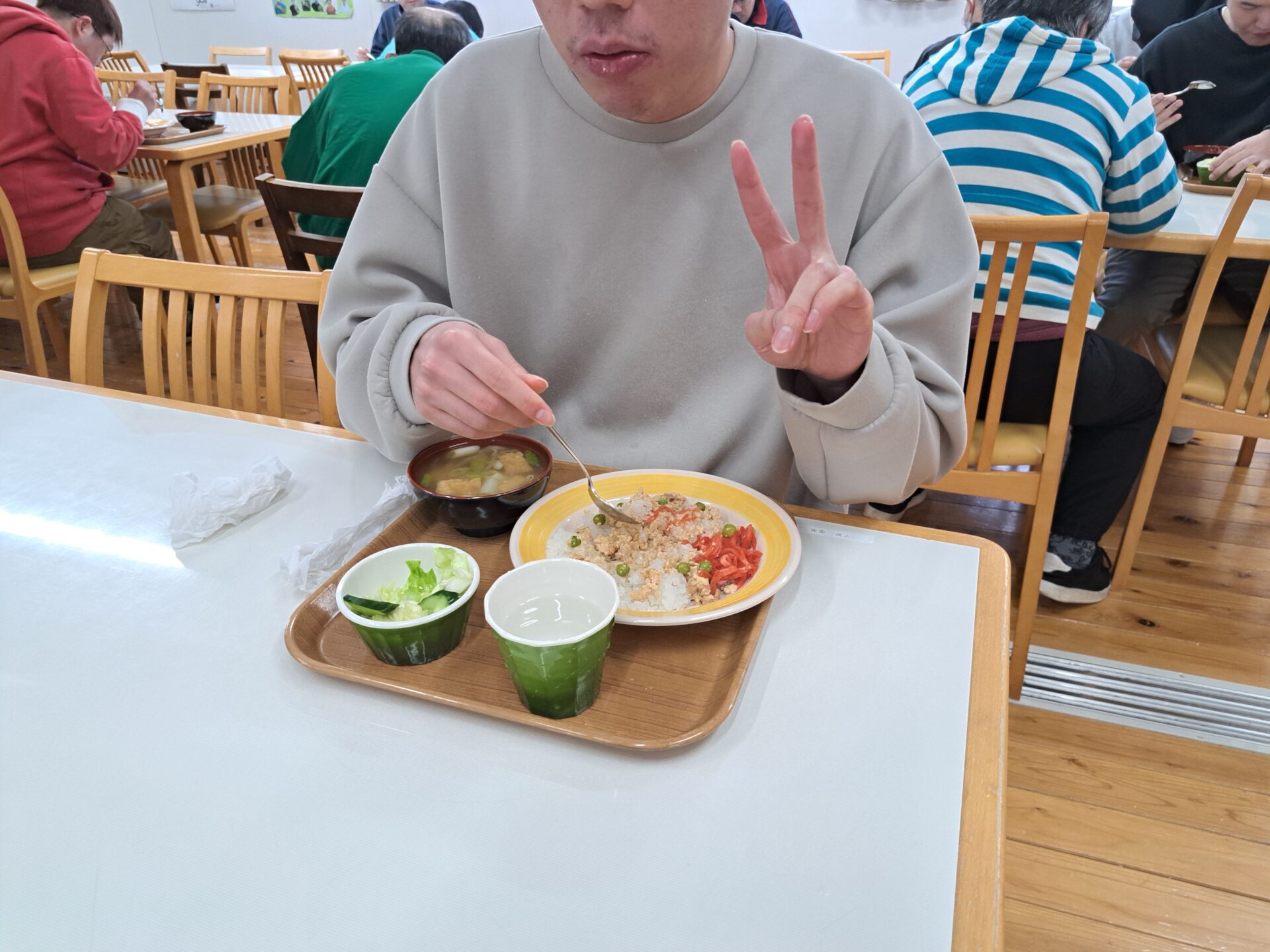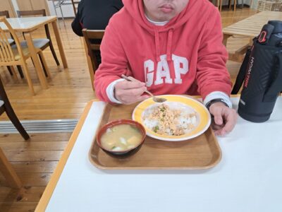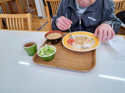 お腹いっぱいで眠い昼休みですが、若い利用者さん達はみんな元気いっぱい~(;^_^A