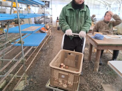 ハウスは今日も引き締まったしいたけが採れてますよ~(*^-^*)