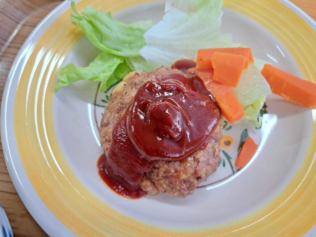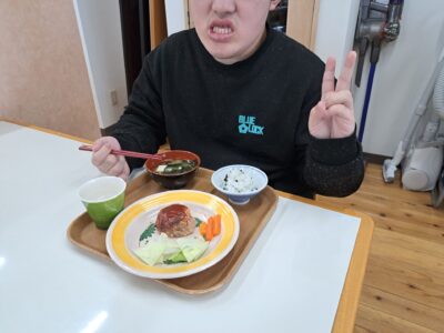 節分の定番メニューは手作りの大豆入りハンバーグ♪デミグラスソースたっぷりでご飯が進む~(*´▽`*)