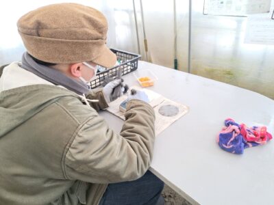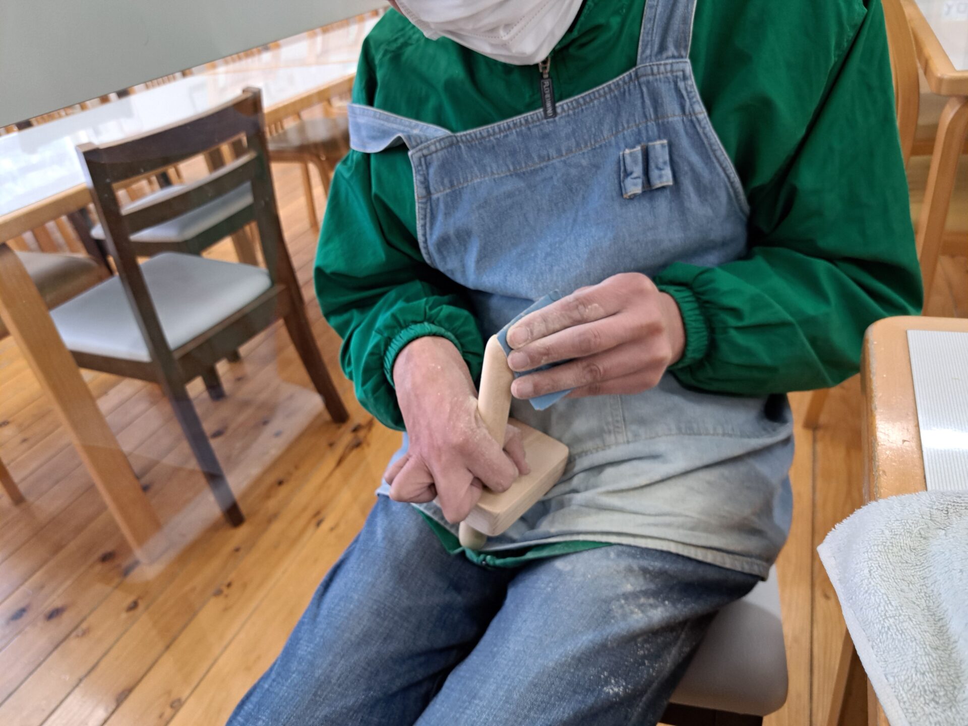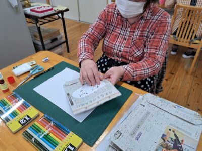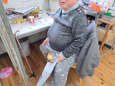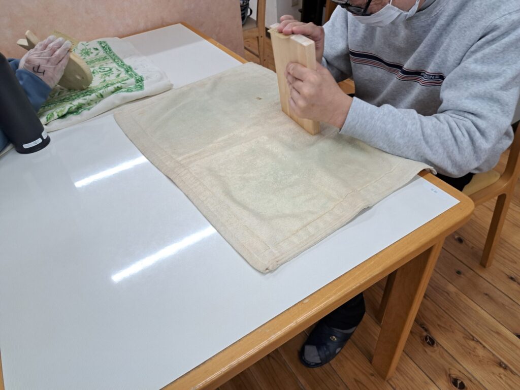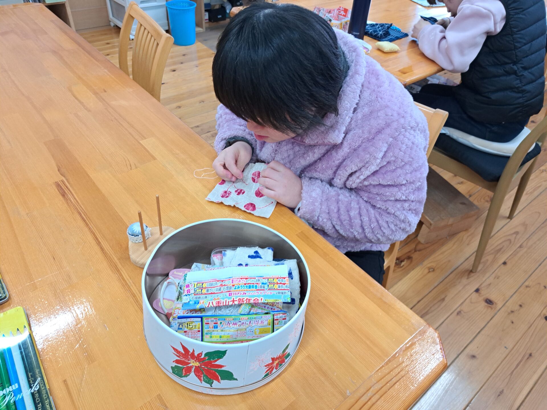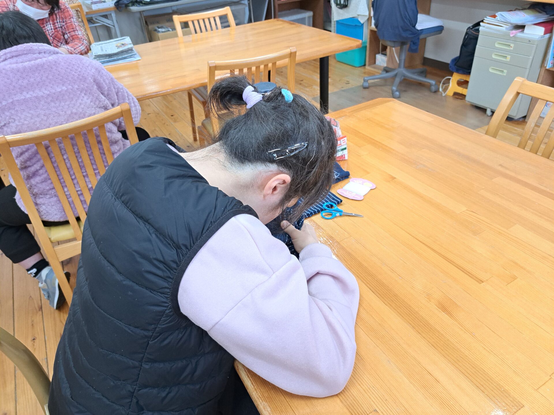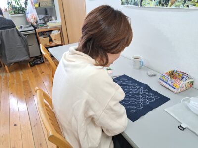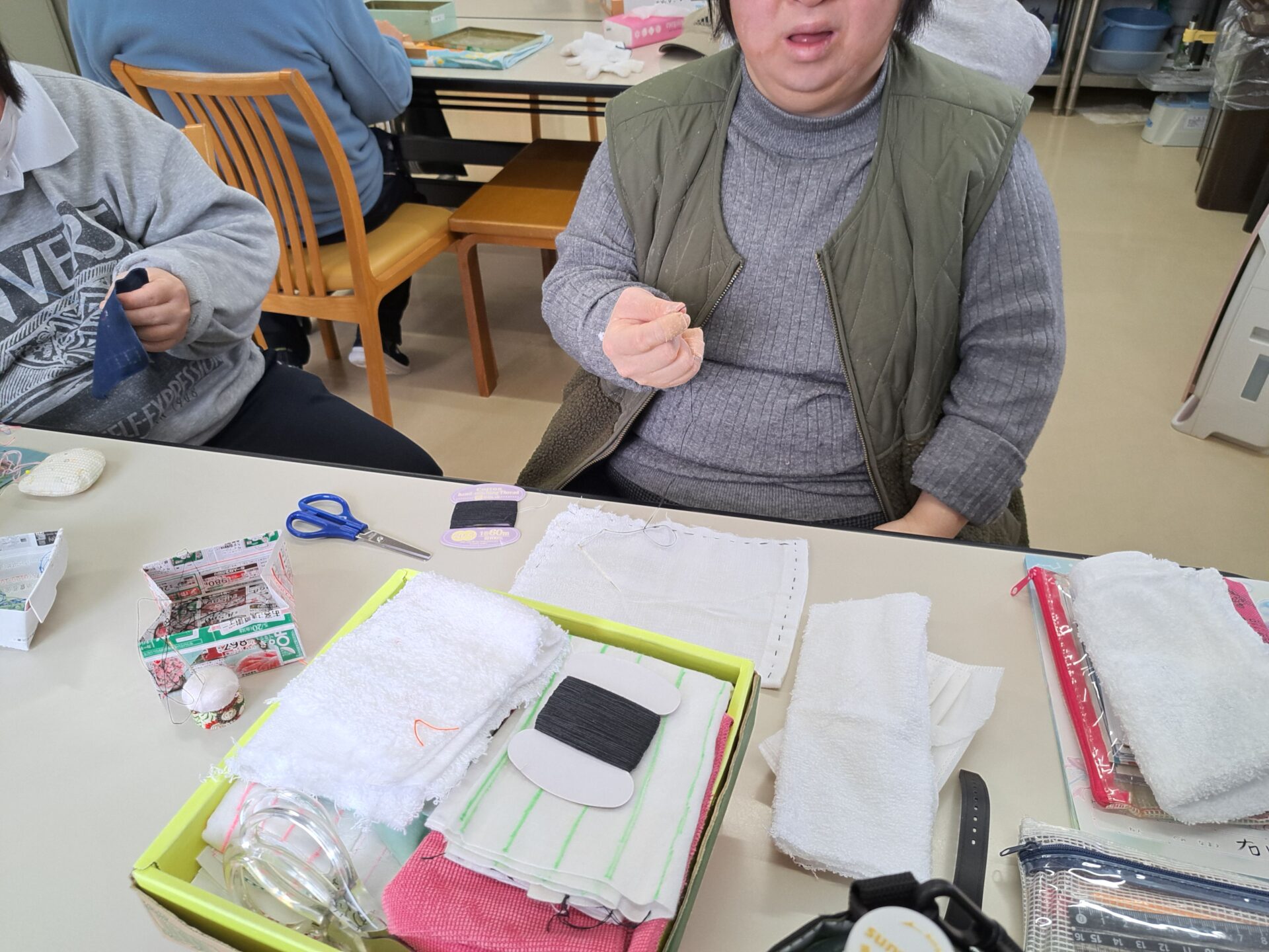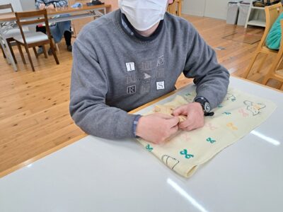 あとは利用者さんが最後の仕上げです~ひもを通して内布のまつり縫いお願いします~(*^-^*)
