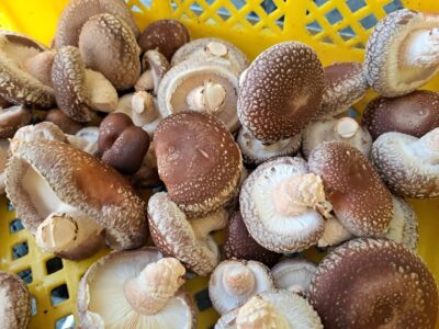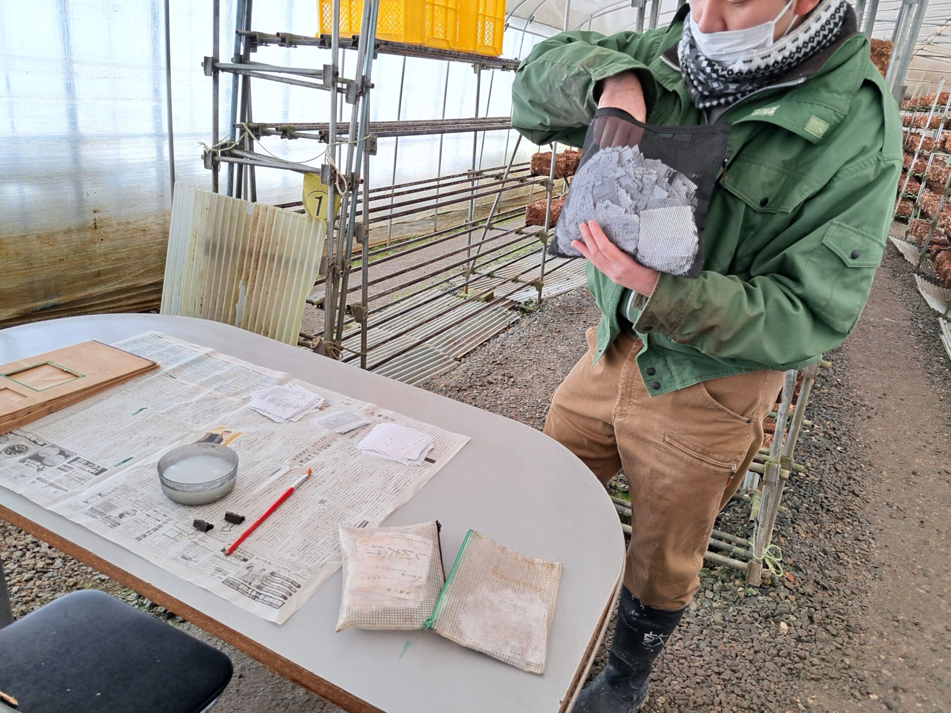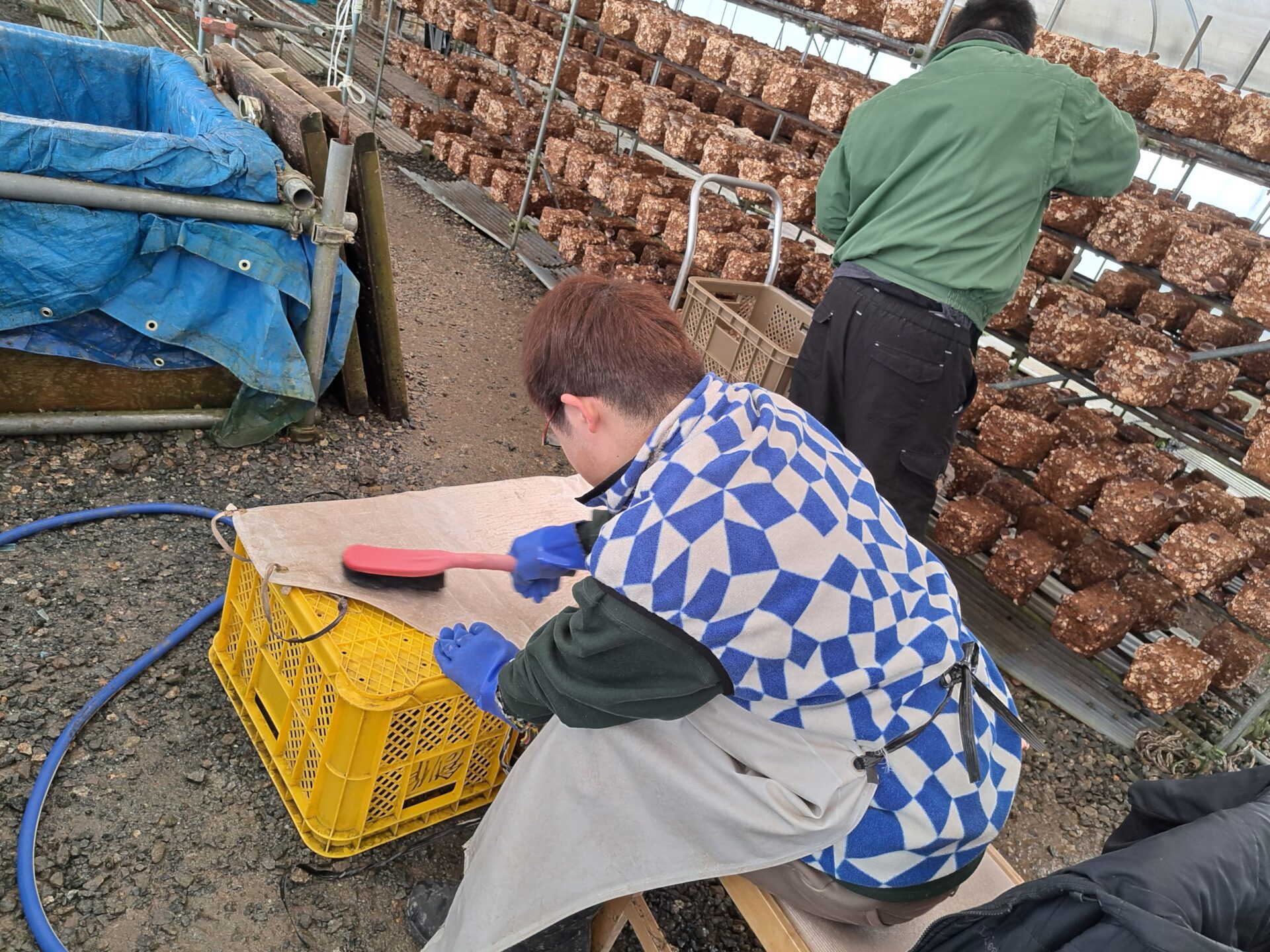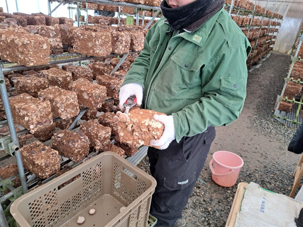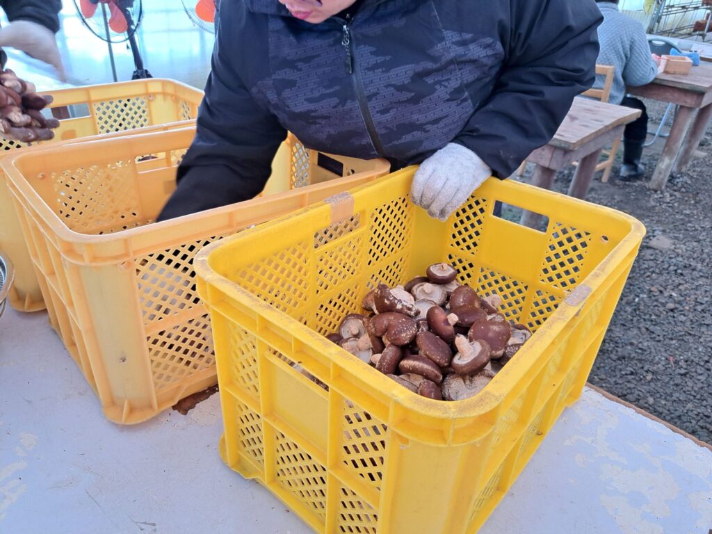ハウスでは今日も立派なしいたけ出ていました~(/・ω・)/