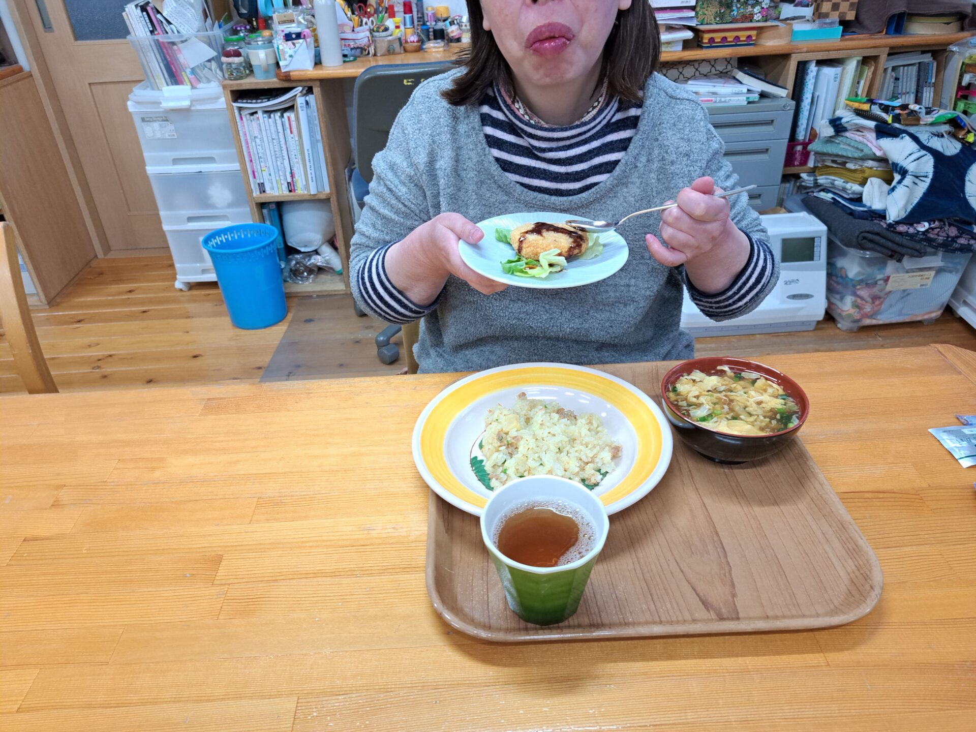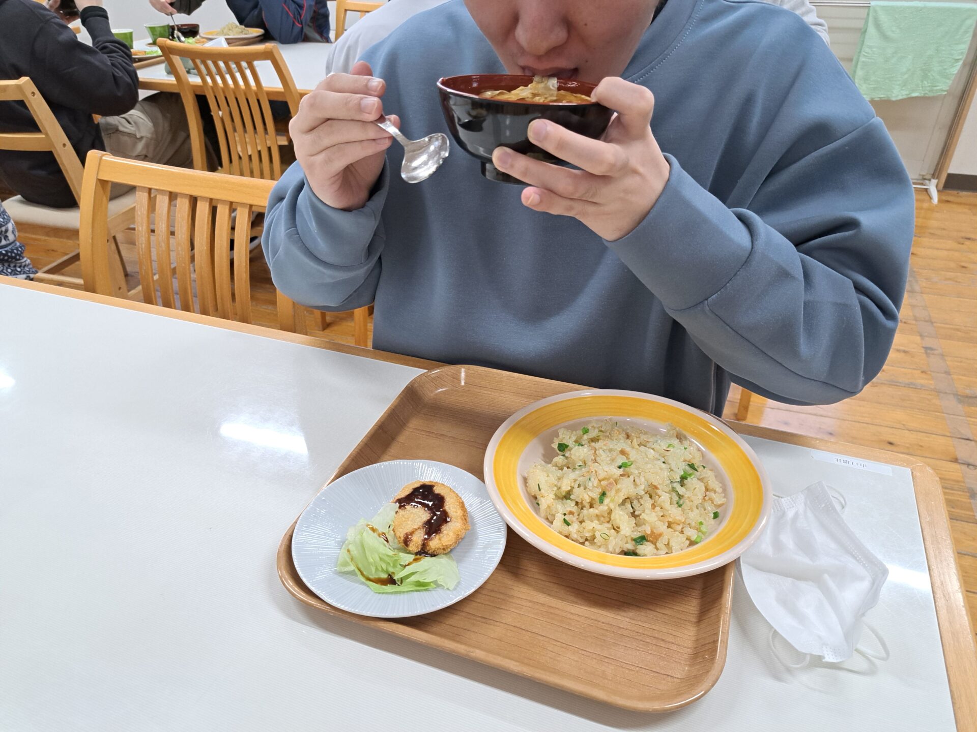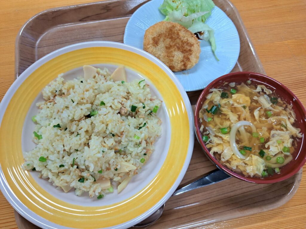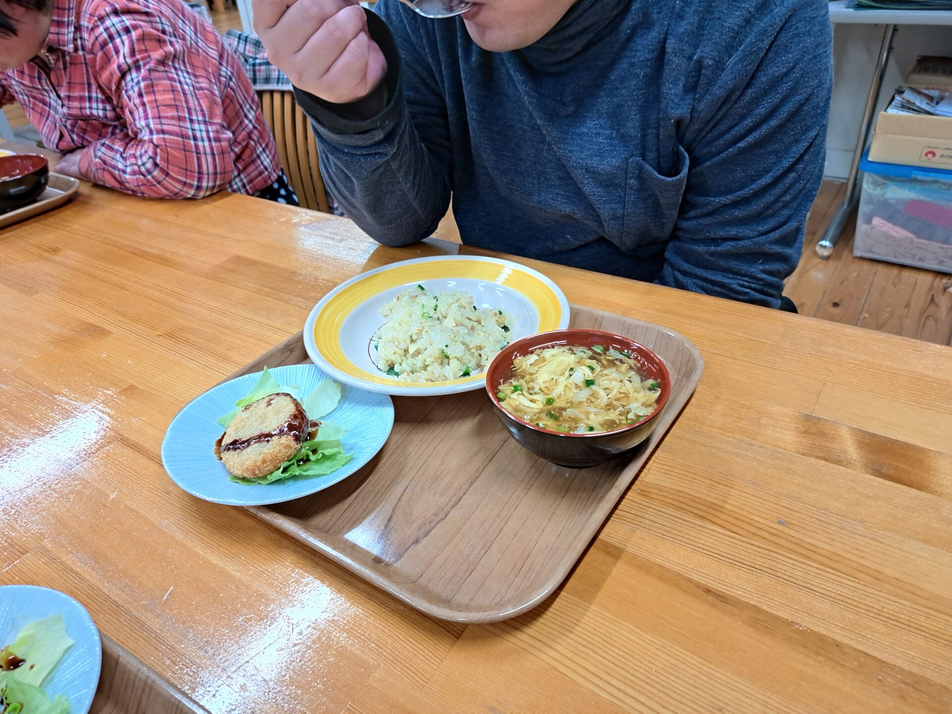 シーチキンピラフ&コロッケ&かきたま汁~かきたま汁にうどん入ってるし!最高!!!(^^)!
