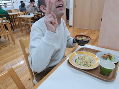 給食のいい匂いがしてきました~♪お腹ペコペコ!