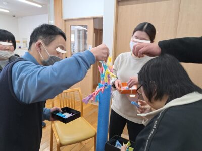 こちらも4人1組で3ゲーム行います。制限時間3分で最後に何個くっついているかを競います♪
