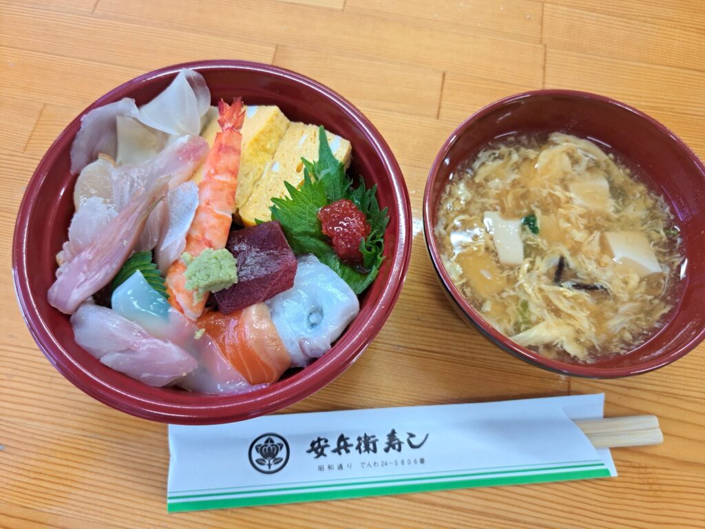 そして昼食は「安兵衛寿司」さんのまかない丼です♪おいしそう~!(^^)!