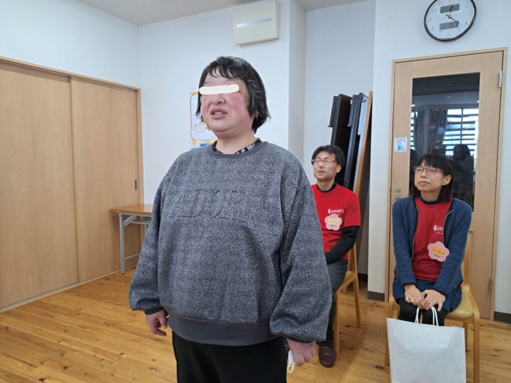 「みなさん楽しかったですか?これでさくらが丘雪まつりを終わります!」イラストを描いてくれた利用者さんの力強いあいさつで、大盛況の雪まつりが閉会です~ありがとうございました!