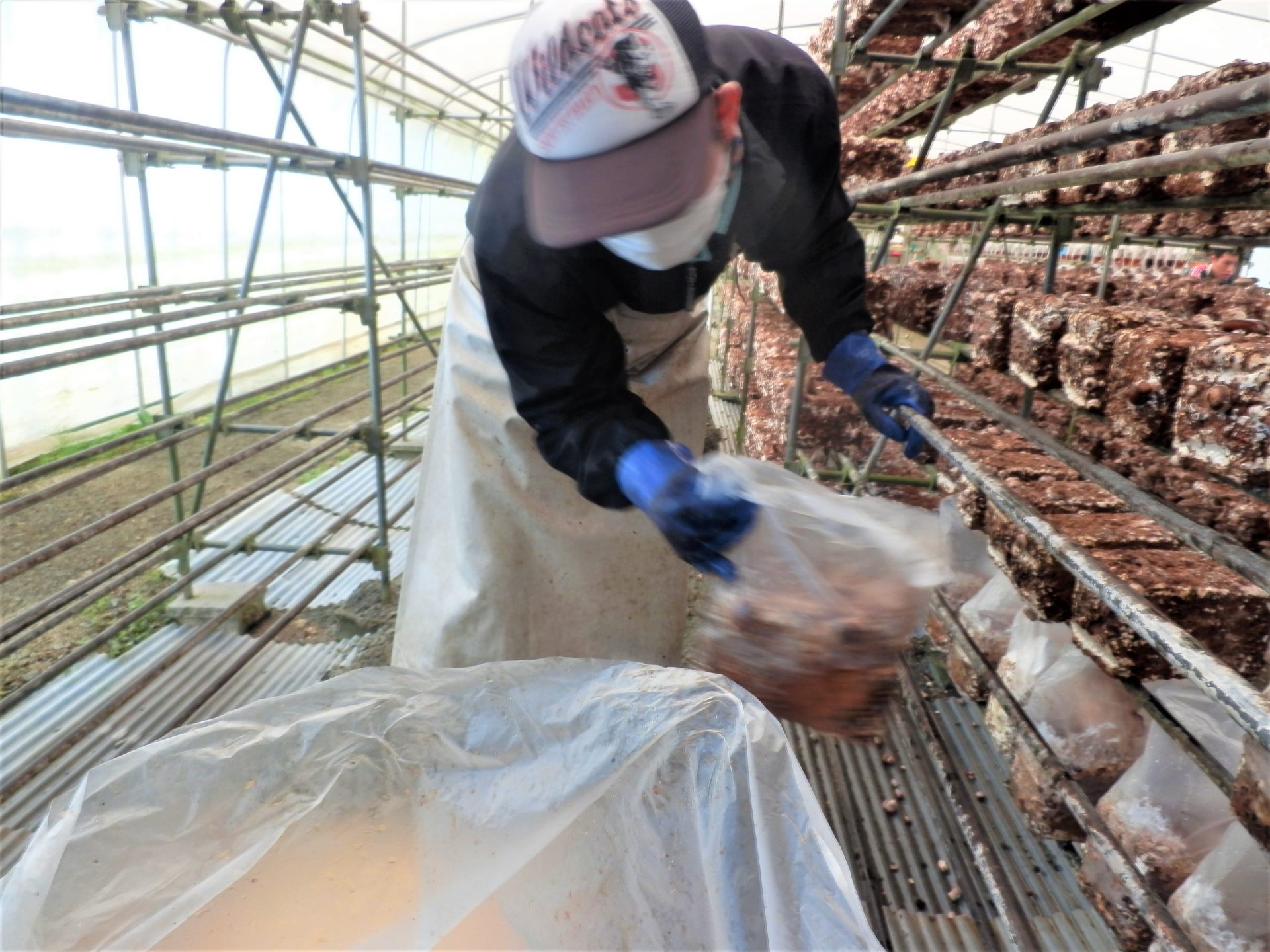 - 袋から菌床をどんどん出します~
