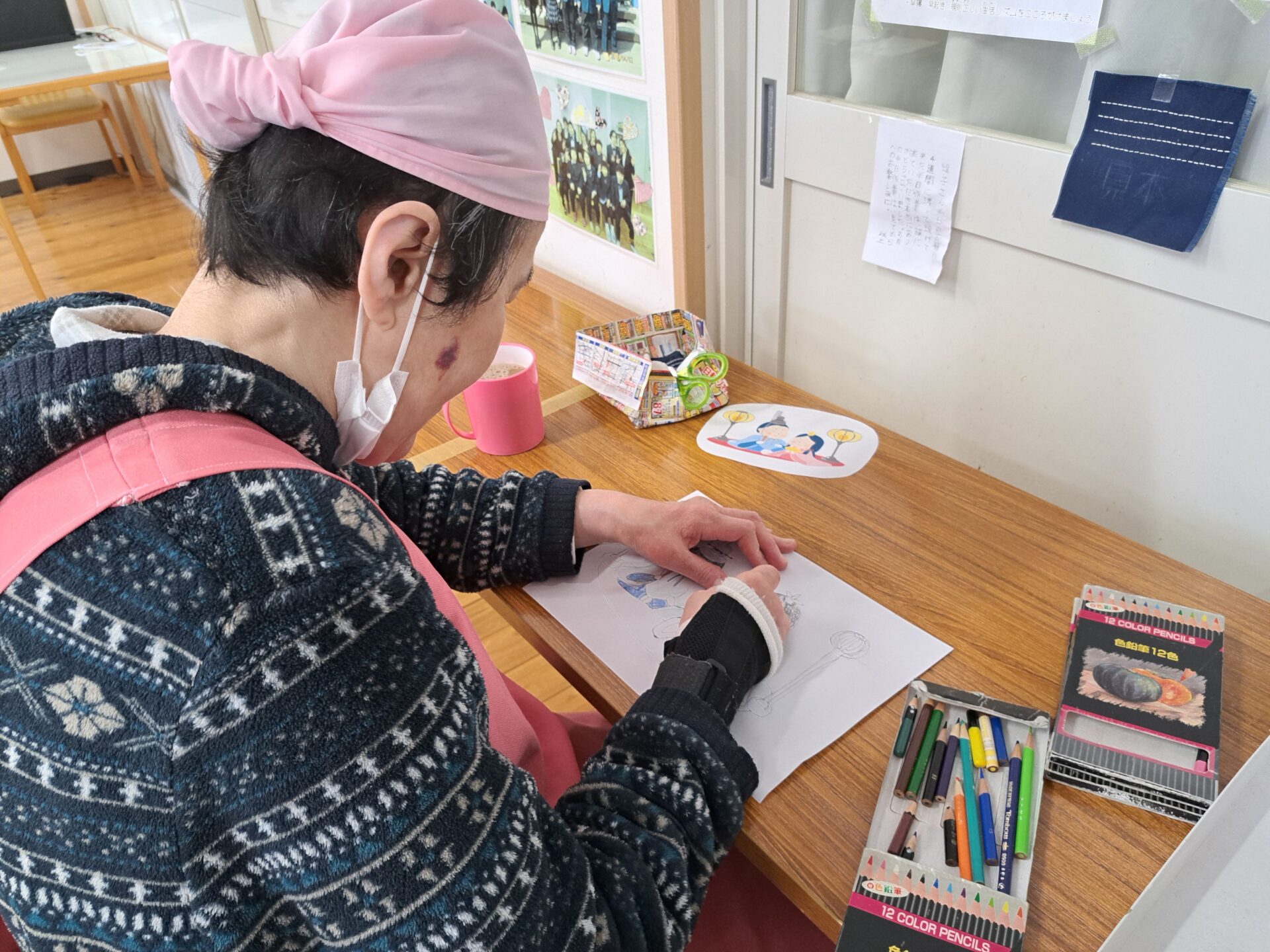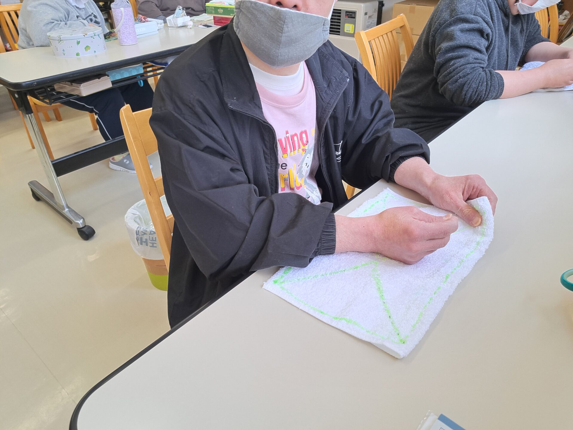 - 「お絵描きやタオルたたみをしました!」