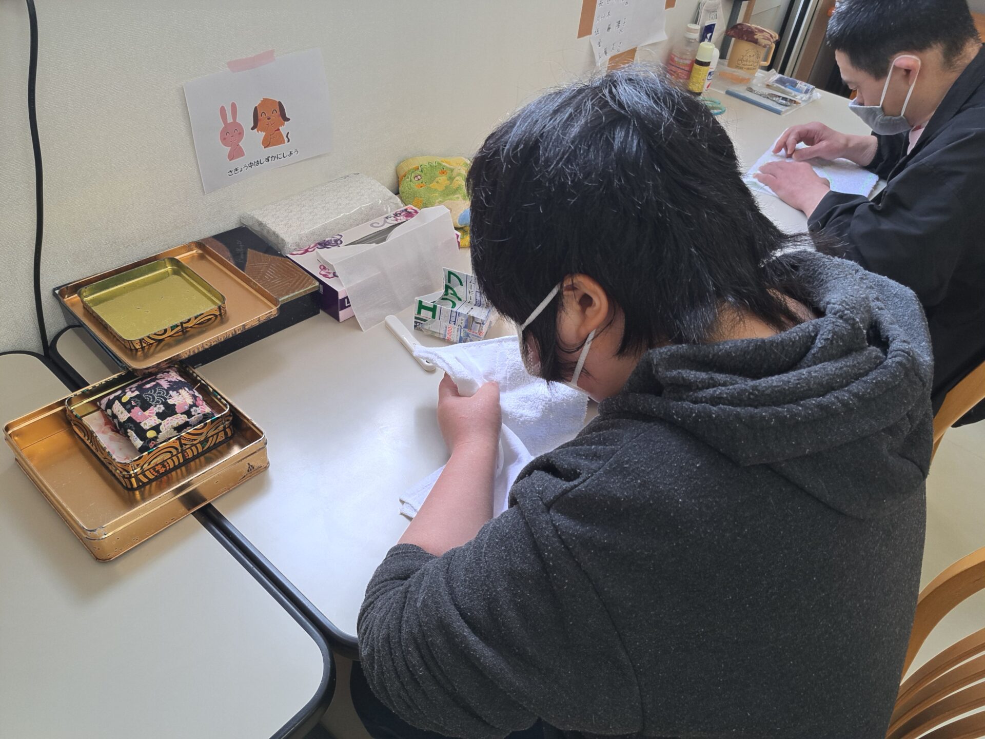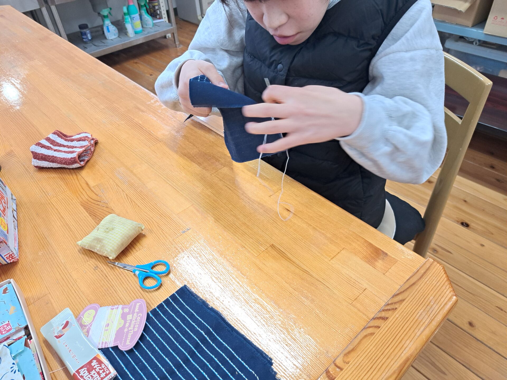 ところ変わって裁縫班~2月、3月の売り上げを上げないと色々ヤバいのでがんばらなきゃ~とりあえずはし袋を増産だ~(;^_^A