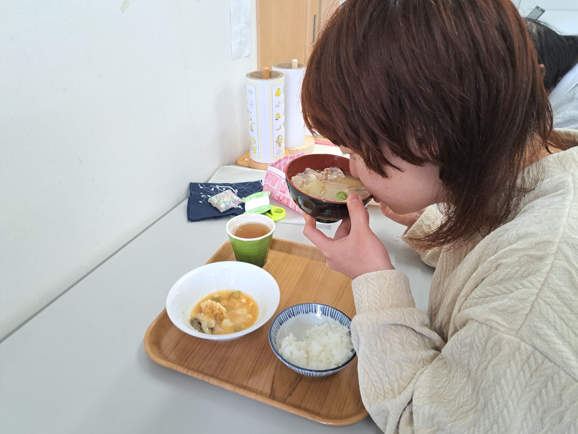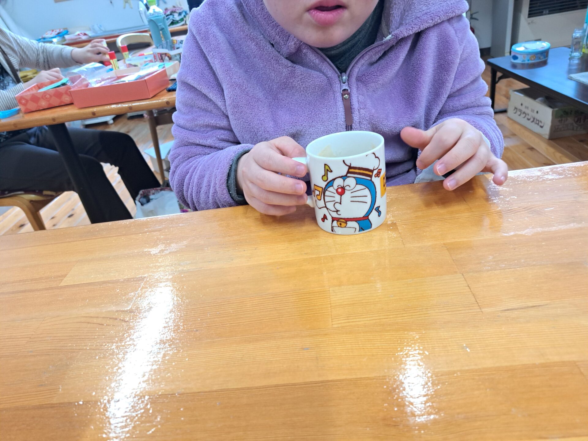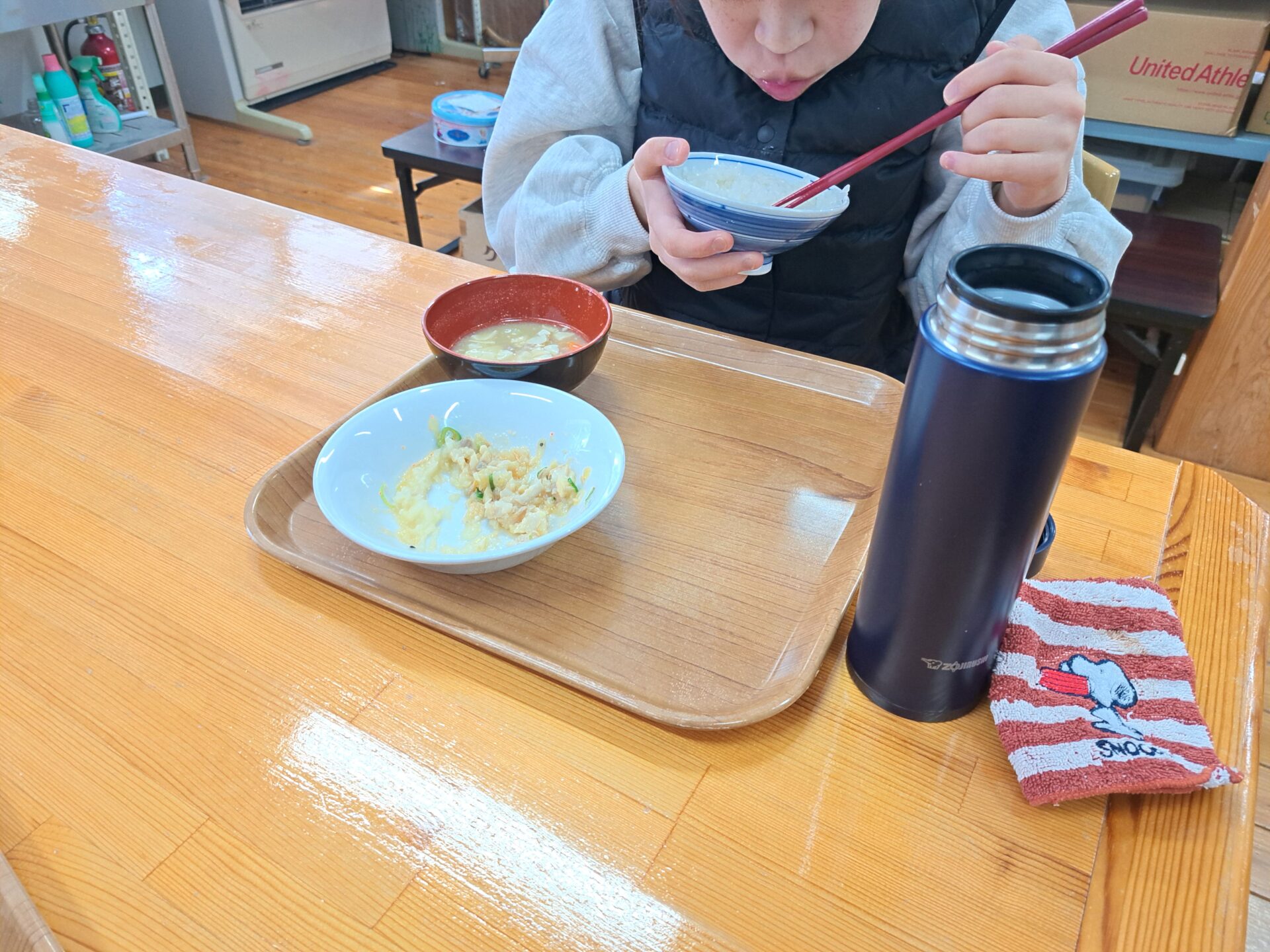 みんな元気いっぱい~休憩時間は雪まつりでもらったお菓子も食べてルンルン♪