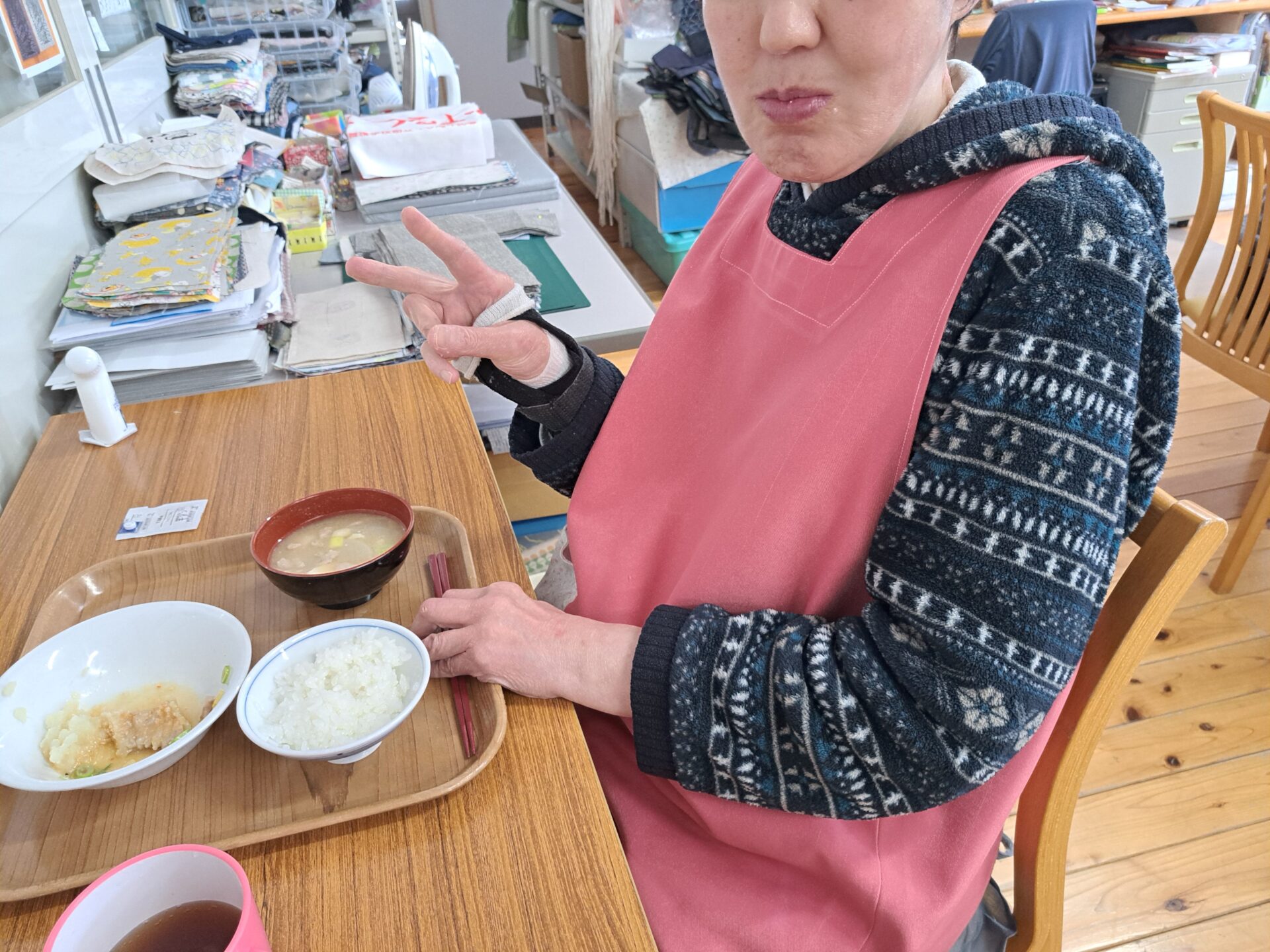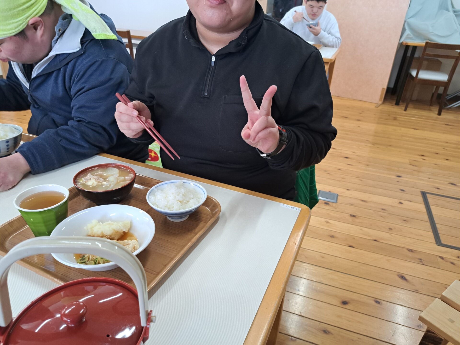 今日は通院してから通所される利用者さんもいました~ご家庭のご協力もあり、なんと今日は全員出勤でした!パチパチパチ~(*´ω`*)