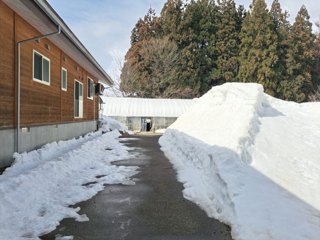 ハウスへ向かう道もアスファルトがしっかり見えています~春近し!